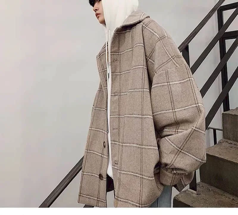 Куртка мужская клетчатая утепленная, утепленная свободная в Корейск...