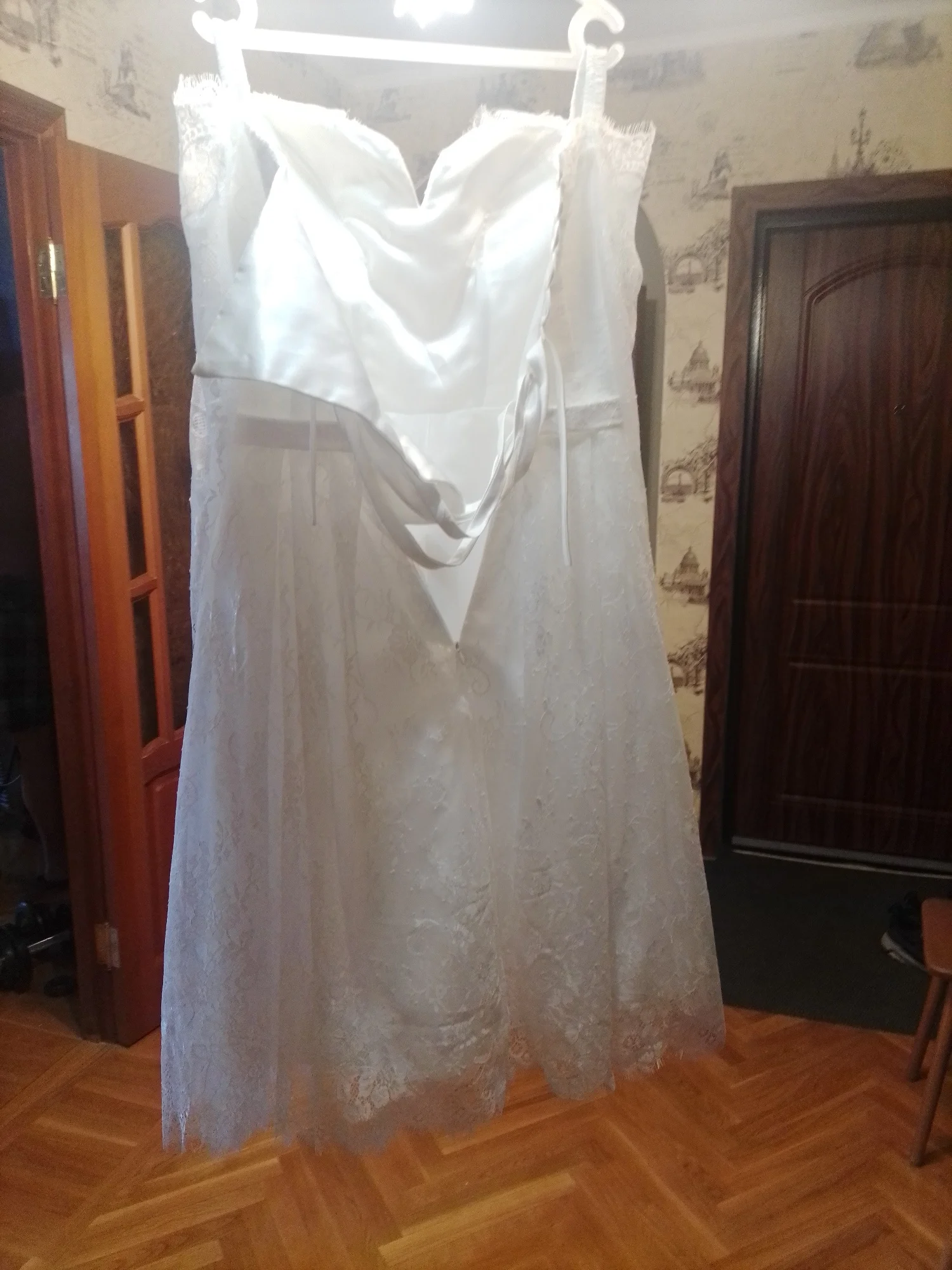 Кружевное короткое свадебное платье невесты из двух частей с жемчуг...