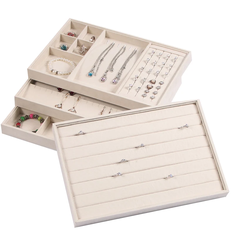Product nameBeige Full Velvet Jewelry Trays Jewelry Storage