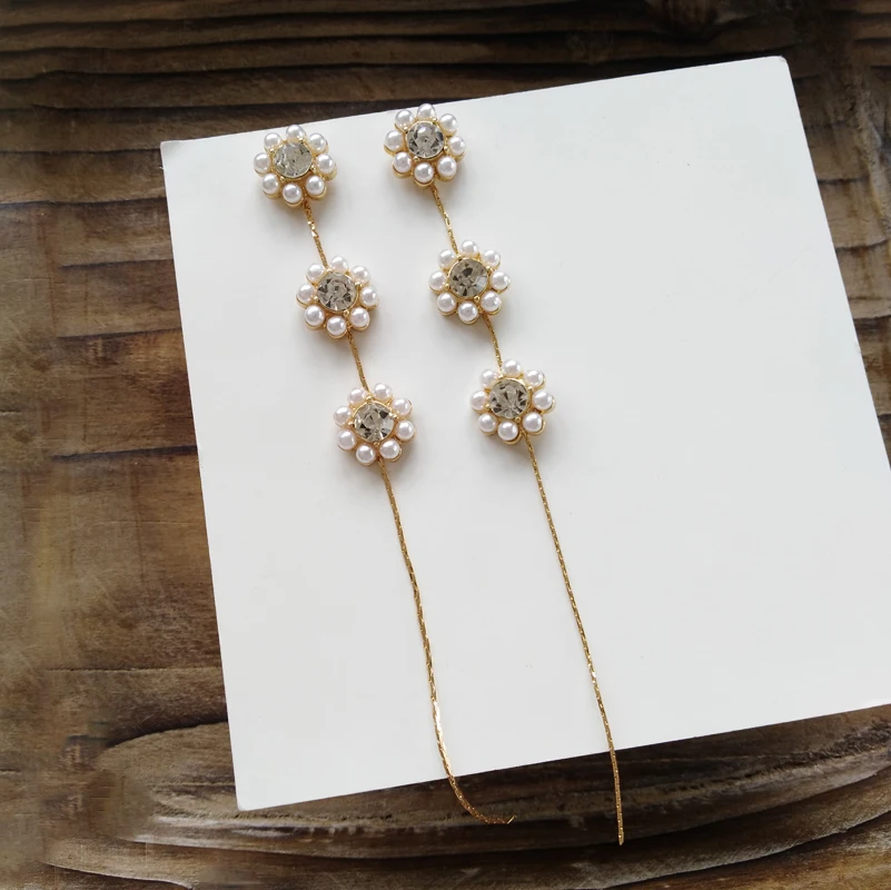 Mihan S925 современные ювелирные изделия Длинные серьги популярный стиль Искусственный жемчуг Высокое качество Кристалл Висячие серьги для женщин