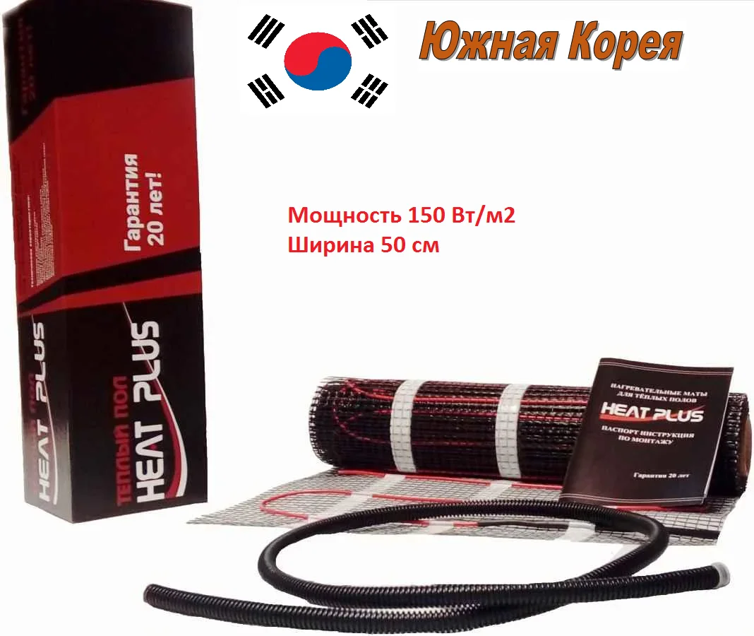 Греющий кабель на мате HEAT PlUS ширина 50 см. 16 м.п. 8м2