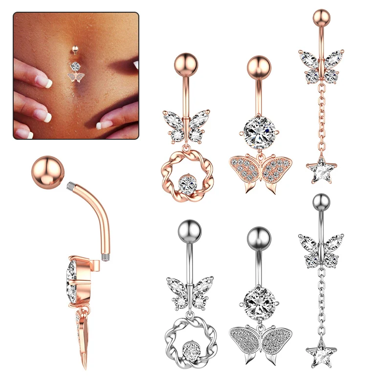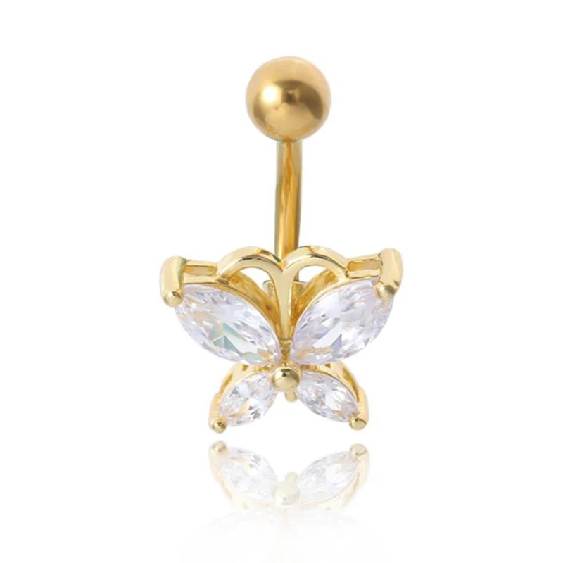 Серьги-гвоздики из нержавеющей стали, украшения для пирсинга живота с кристаллами бабочки, ювелирные изделия для пирсинга, 1 шт.