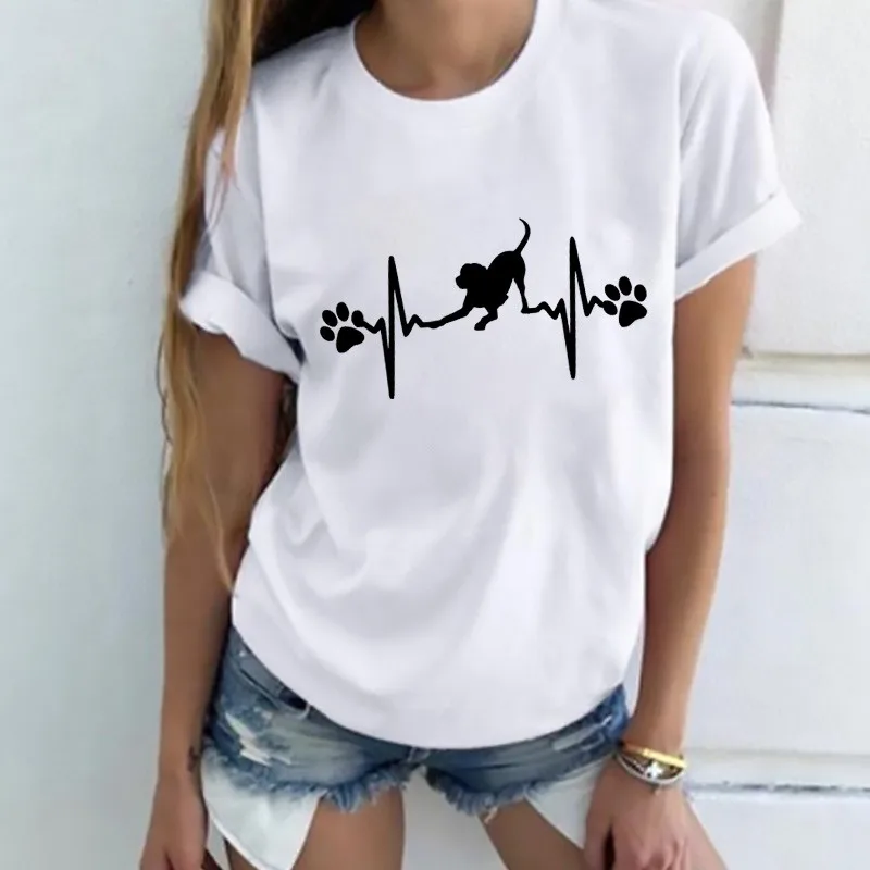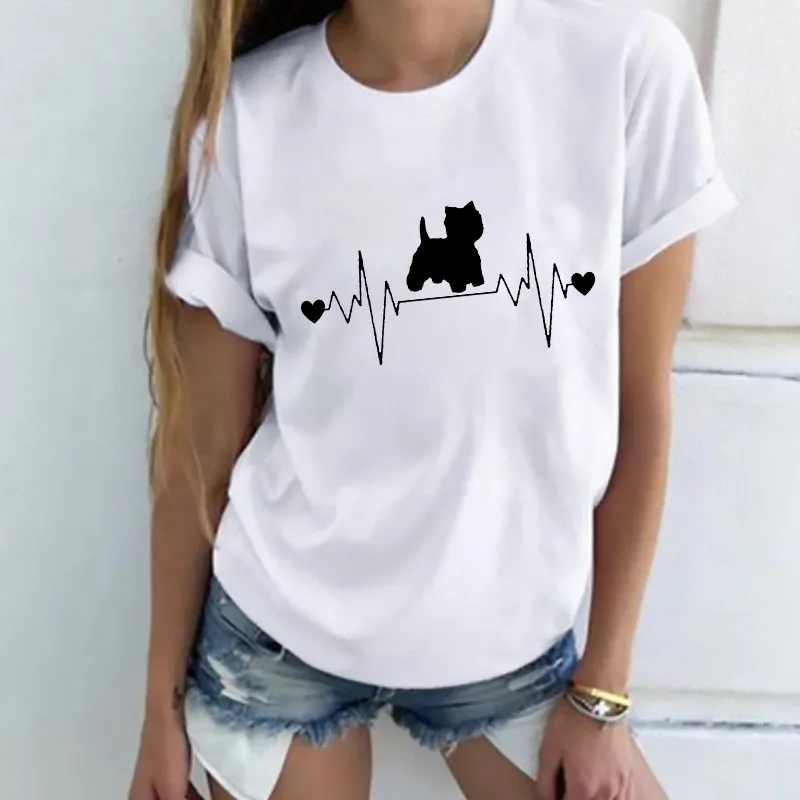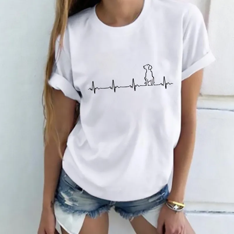 Футболка женская с принтом электрокардиограммы, белая Повседневная Простая рубашка с круглым вырезом и коротким рукавом, лето