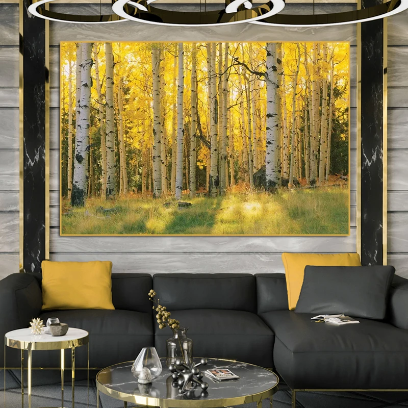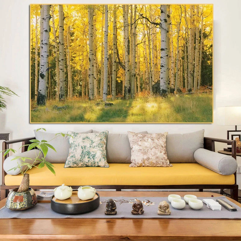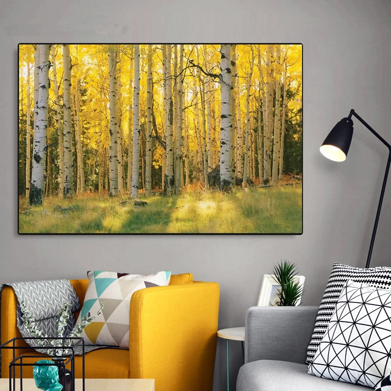 Абстрактный лес желтое дерево холст картины печать на стене искусство холст плакат Современная декоративная фотография для дома гостиной