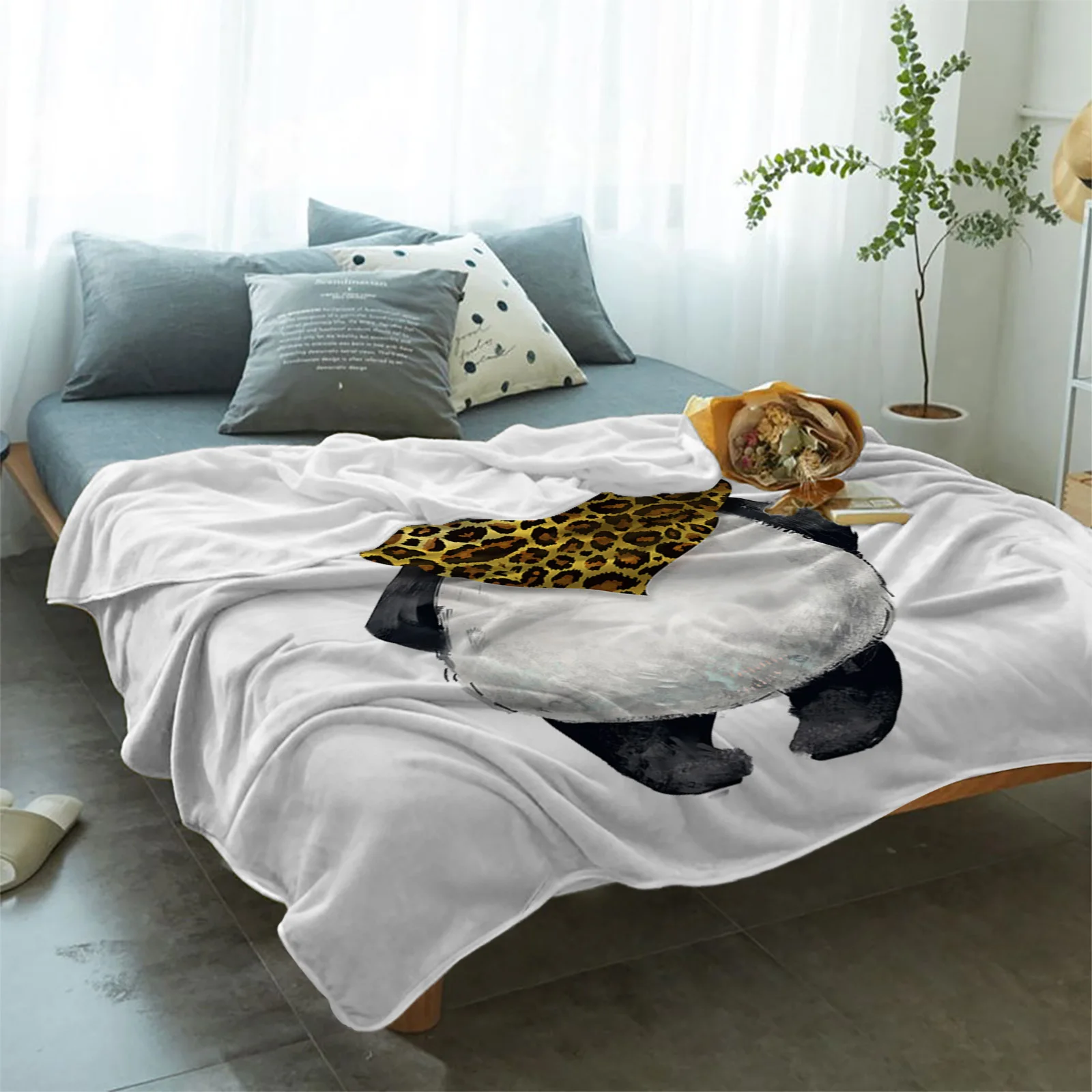 Милый шарф-накидка с рисунком панды, мягкое одеяло для пикника, домашний декор, фланелевое одеяло из микрофибры для кровати