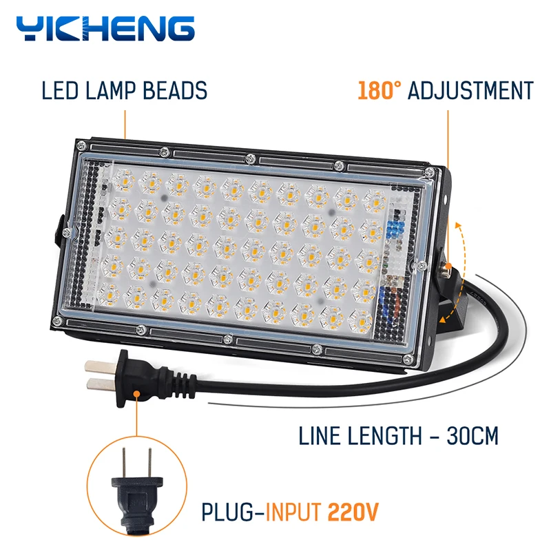 Светодиодный прожектор 50 Вт США вилка IP65 Водонепроницаемый AC220V