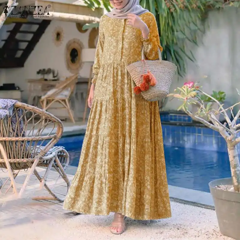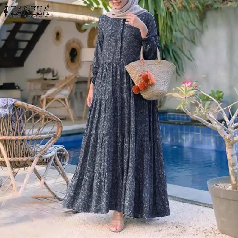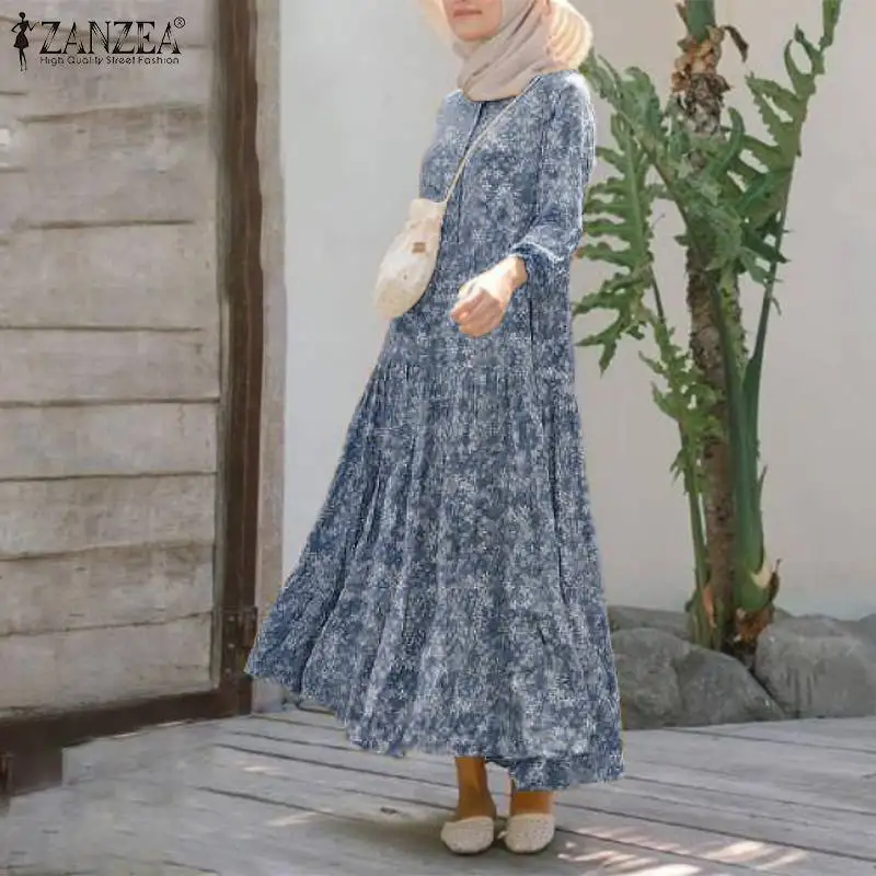 Винтажный халат 2022 осеннее платье ZANZEA в стиле ретро с цветочным принтом, женское длинное платье, повседневные свободные платья с оборками