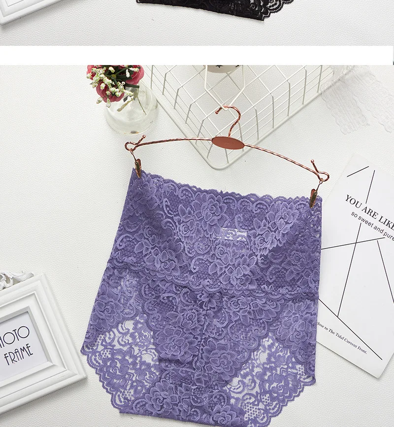 Женские кружевные трусики с цветочным принтом, с высокой талией, из дышащей ткани, бесшовное нижнее белье, размера плюс