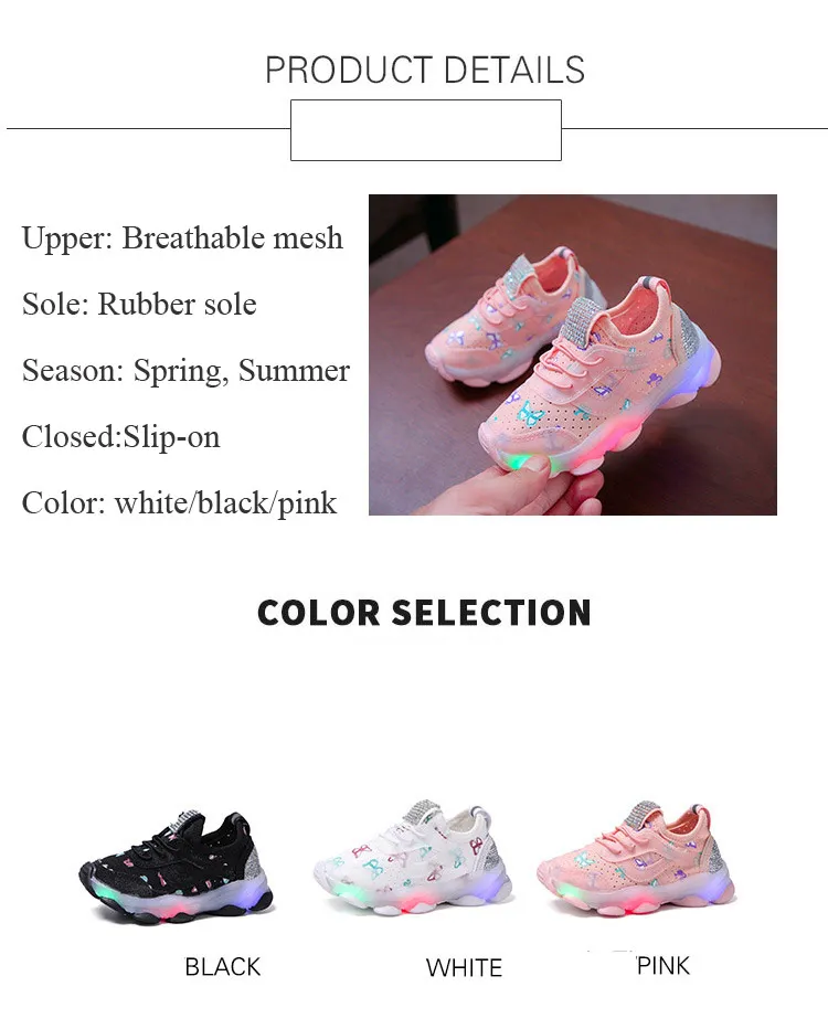Детские светящиеся кроссовки со светодиодной подсветкой и бабочкой ...
