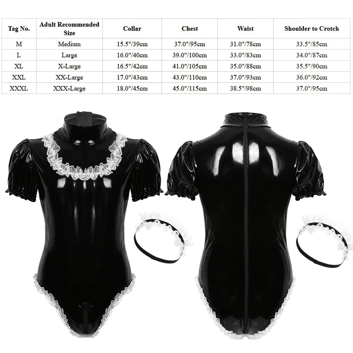 Особенности:Мужской взрослый костюм для косплея wet look горничная Сисси, набор для ролевой игры на Хэллоуин, сделает вас соблазнительной и соблазнительной.В комплекте с эластичной кружевной повязкой на голову. Изготовлен из лакированной кожи, приятный на ощупь.Подходящие 1 пара чулок длиной до бедра. Полноногие, мягкая лакированная кожа, сверхпрочные и долговечные.Идеально подходит для клуба, ролевых игр, маскарадвечерние, карнавала, тематических вечеринок и Хэллоуина.Пожалуйста, внимательно проверьте таблицу размеров перед покупкой, ручная стирка в холодной воде.