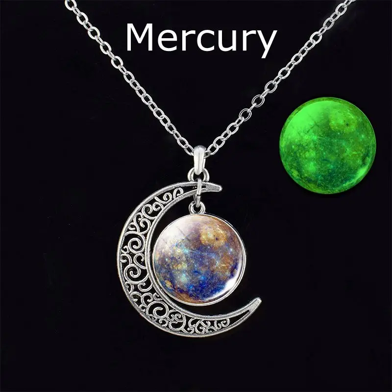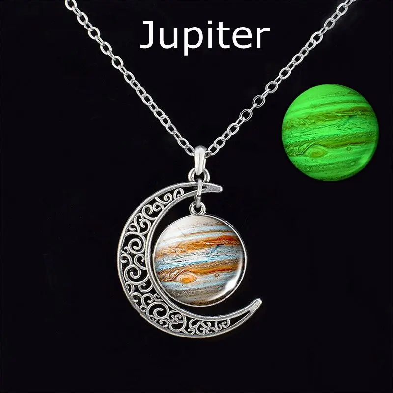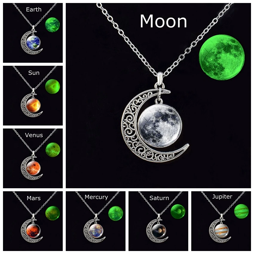 Светящаяся солнечная система планета подвеска в виде полумесяца Луна земля солнце ювелирные изделия модная женская цепочка ожерелье подарок светится в темноте