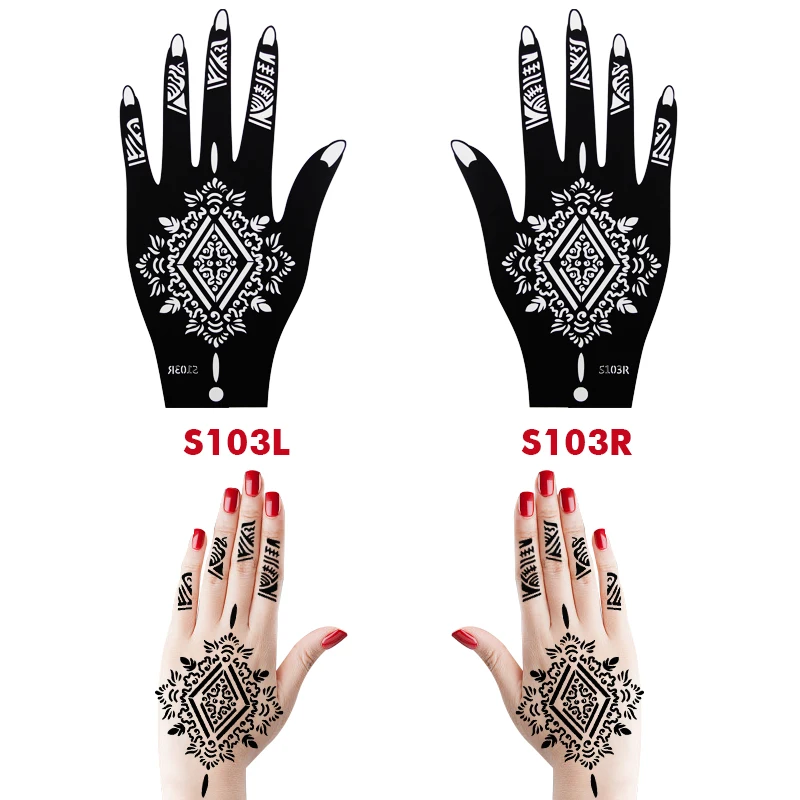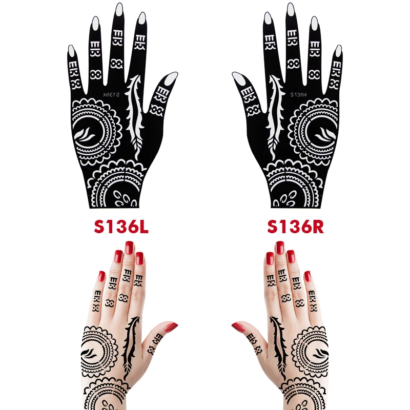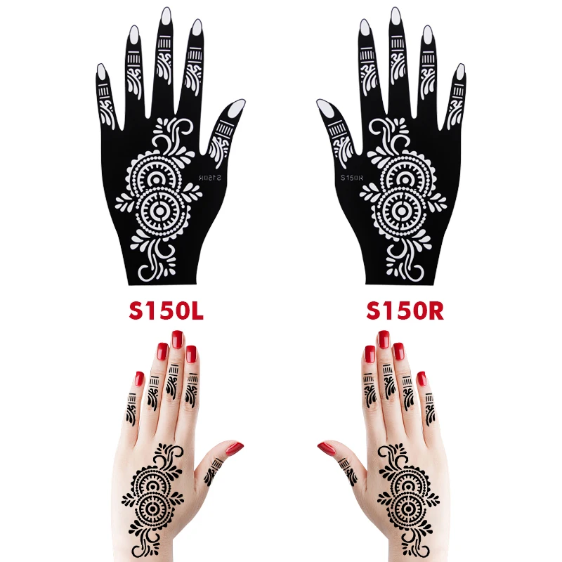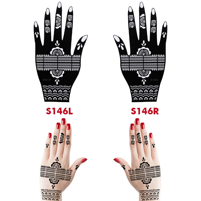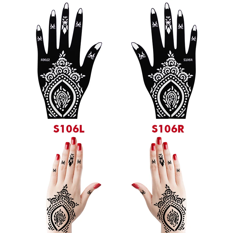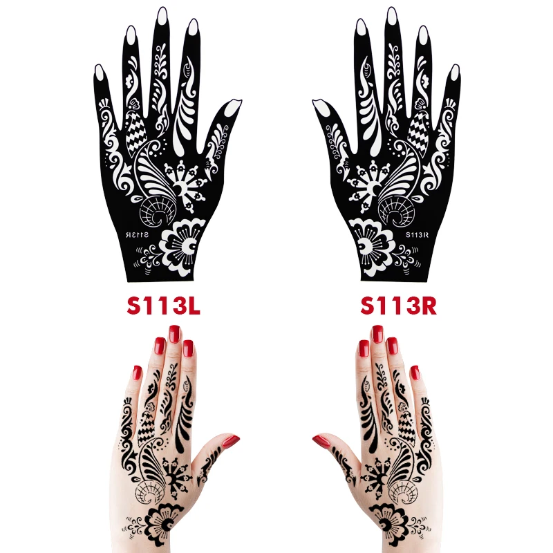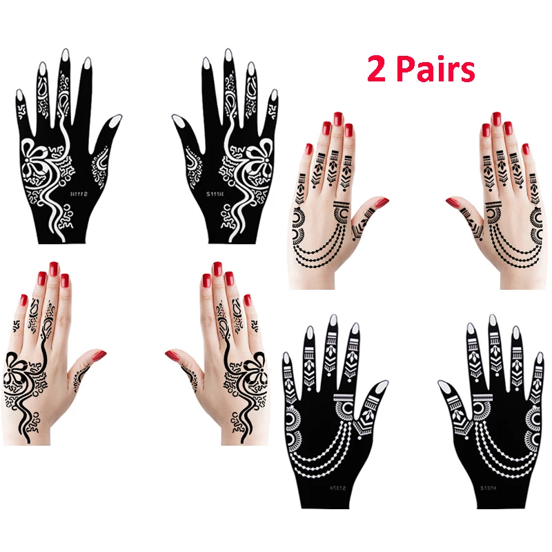 4 листа ручной хна Трафареты для тела Краски, цветок, Аэрограф Для блесток татуировки хной Менди сок Шаблоны, наборами по 2 пары 21*12 см