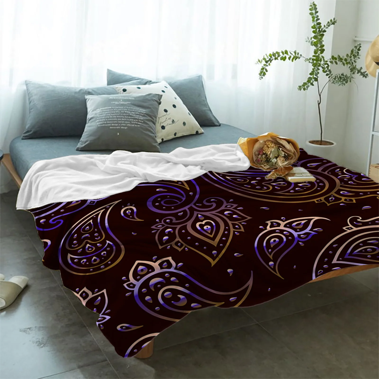 Одеяло в ретро стиле с рисунком Пейсли, мягкое Фланелевое покрывало из микрофибры с изображением кешью для пикника, домашний декор