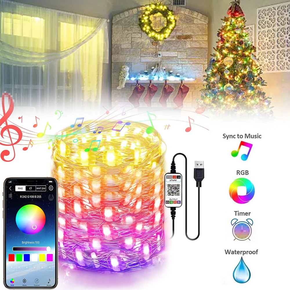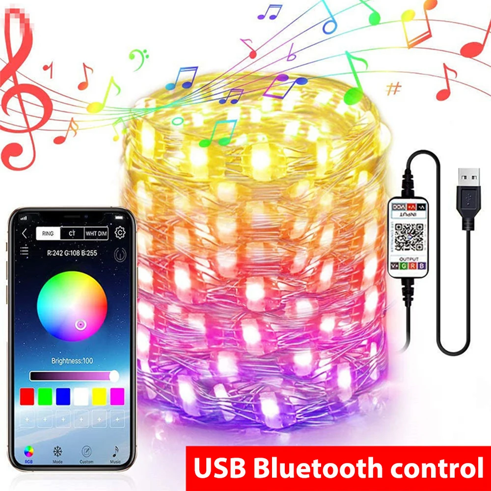 Сказочная светодиодная usb-гирсветильник да с Bluetooth, медный провод, для дома, свадьбы, Нового года, вечеринки, атмосферное украшение, праздничное освещение