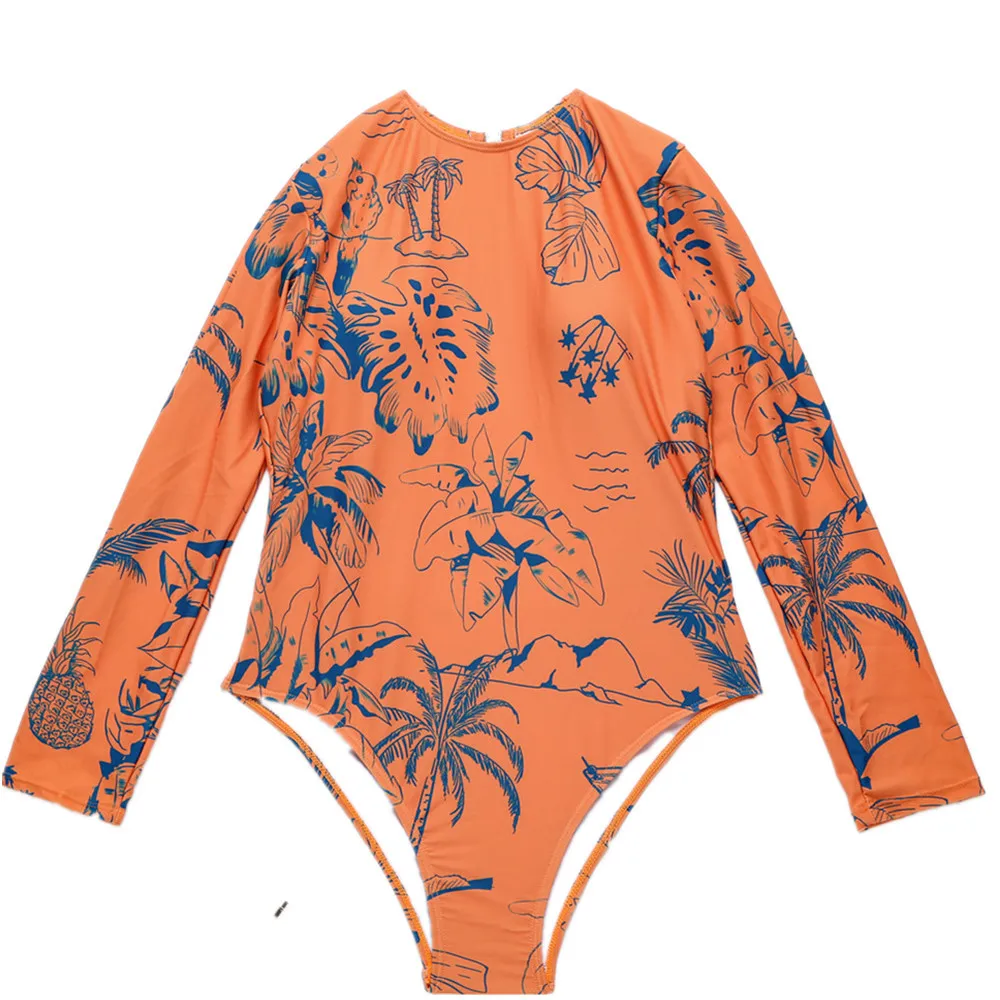 Купальник 2021 новый солнцезащитный купальник с длинными рукавами Цельный купальник Женский гидрокостюм