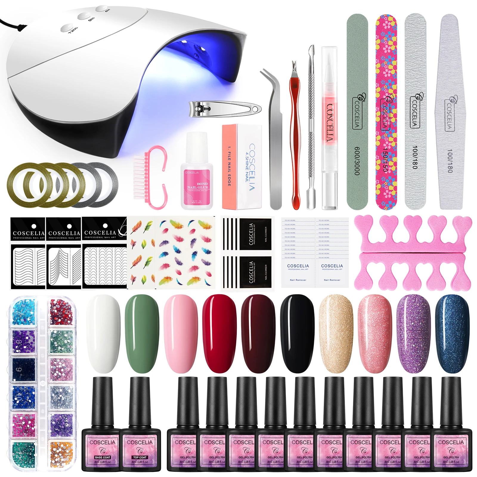 Набор лаков для ногтей COSCELIA, набор для маникюра с фрезами, сушилка для гель-лака, инструменты для маникюра