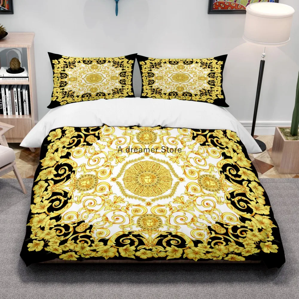 Роскошное постельное белье в стиле барокко, современное искусство, 3D постельное белье с золотым львом, Комплект постельного белья с животными, пододеяльник, набор из 23 предметов, одноместное, двухместное постельное белье из микрофибры