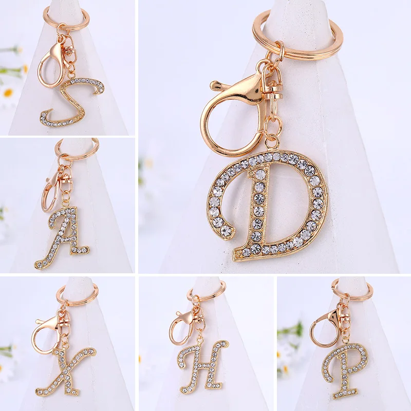Модный новый брелок с кристаллами Алфавит стразы кольцо для ключей с инициалом буквы унисекс брелок 26 букв A-Z ювелирный брелок