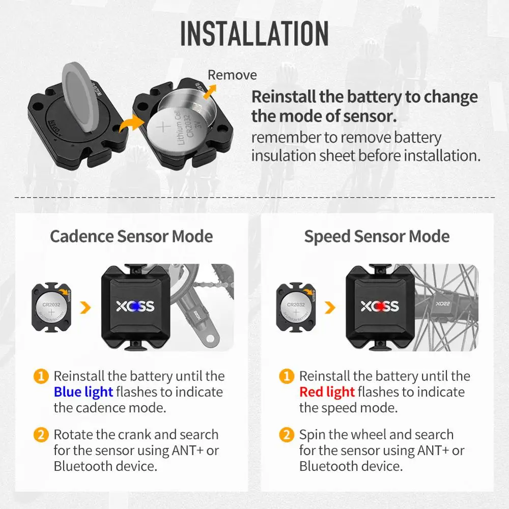 Датчик Каденции XOSS отслеживает вашу скорость и скорость с помощью индукции земли, нет необходимости в магнитах.