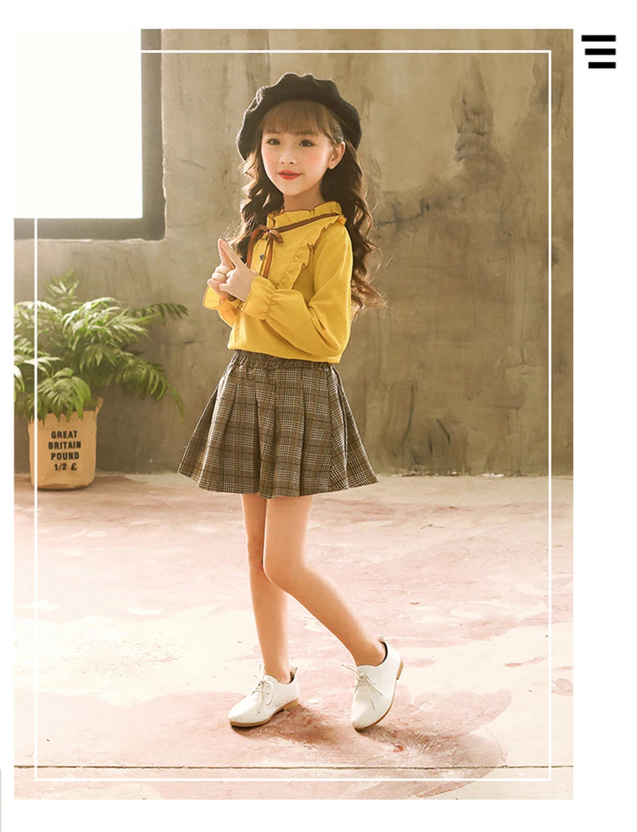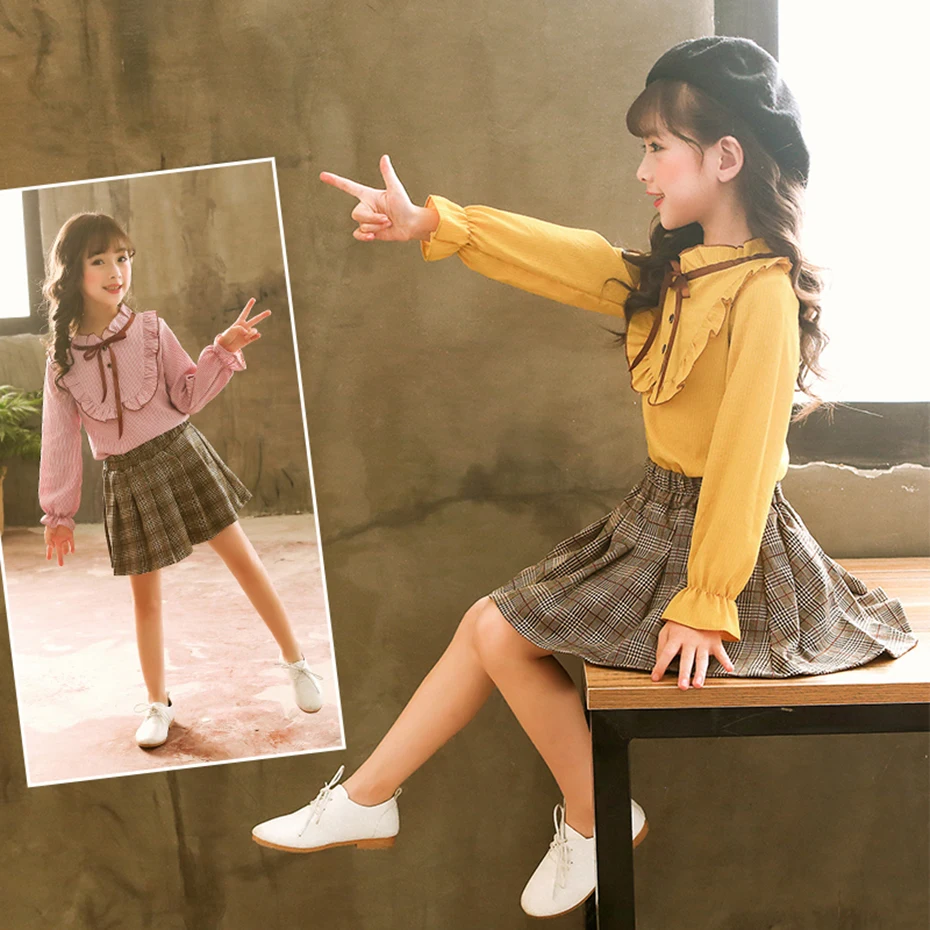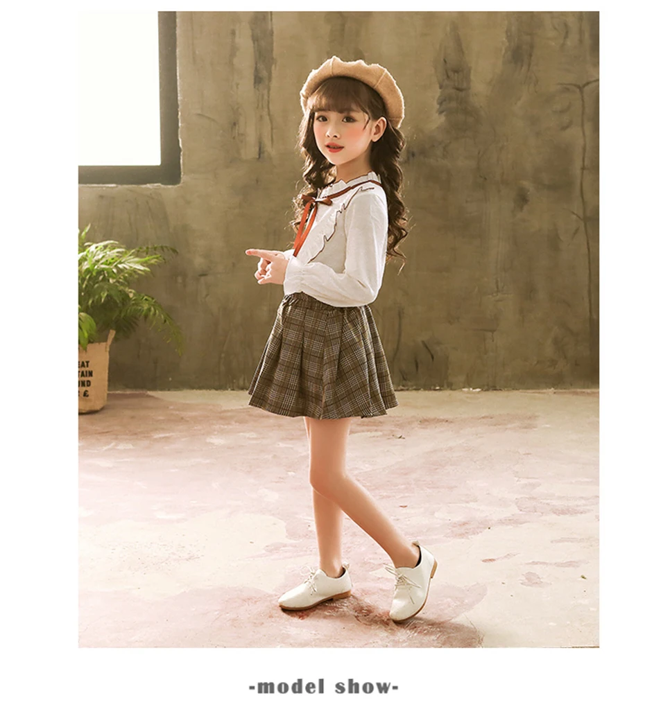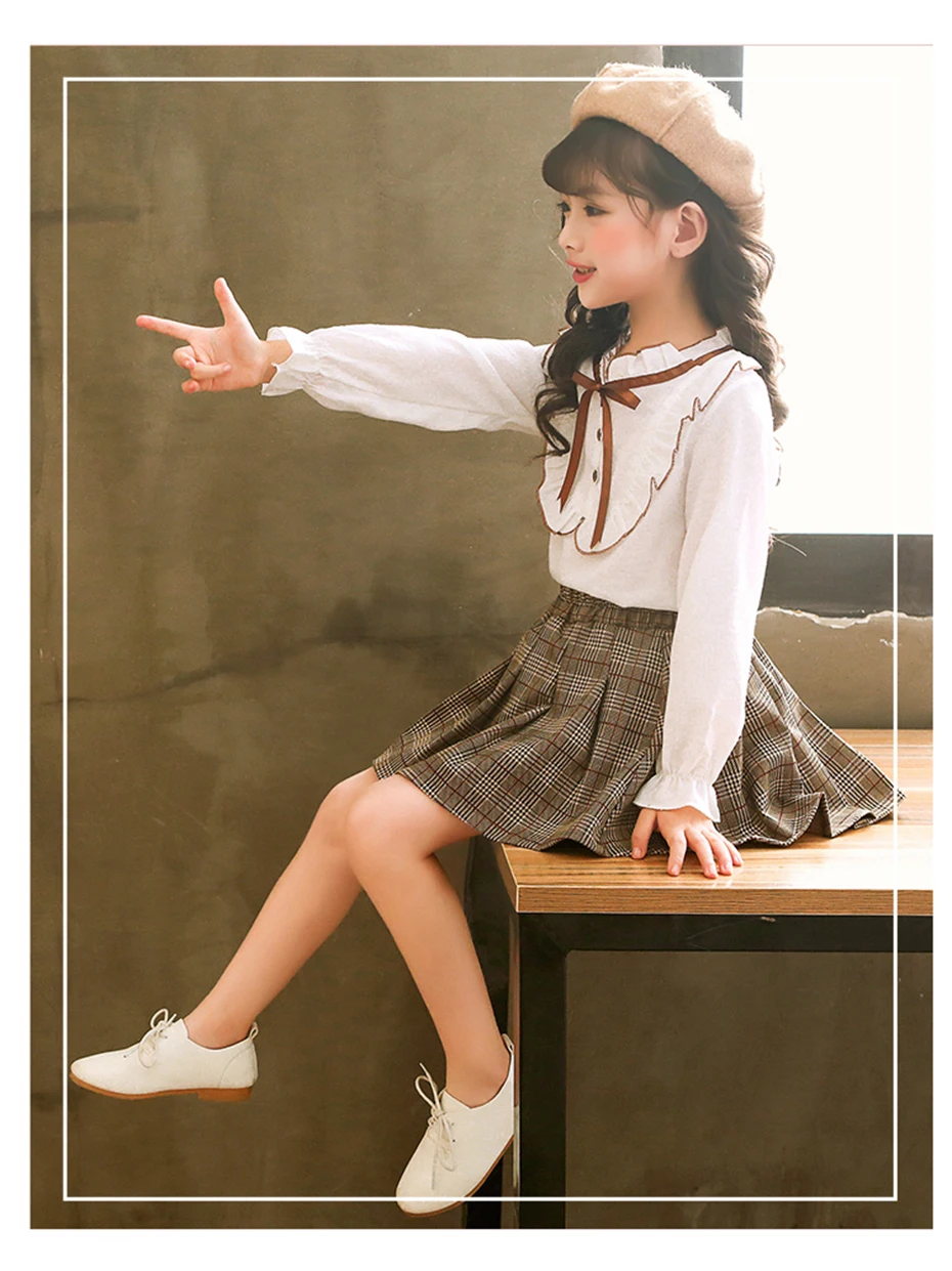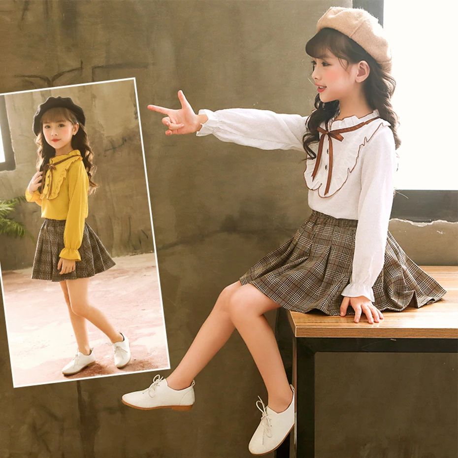 Детская одежда, блузка + платье в клетку, одежда для девочек, весенне-осенняя одежда для девочек, Повседневная стильная детская одежда