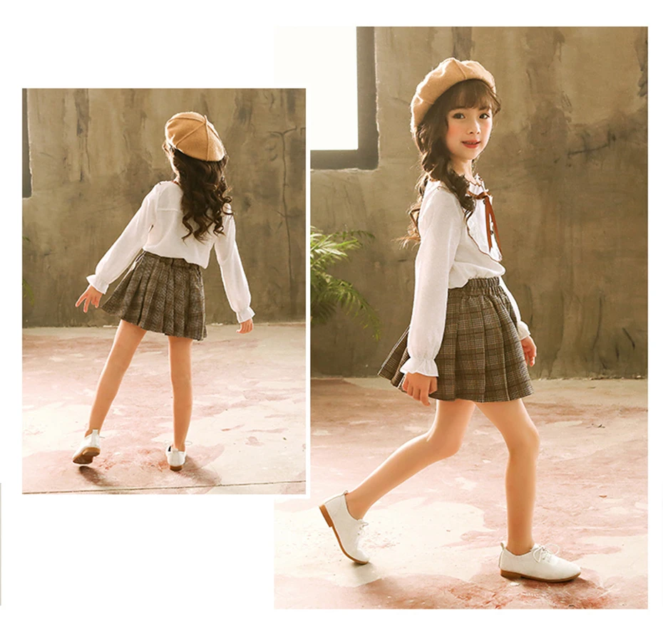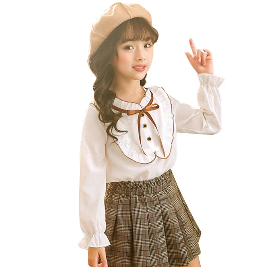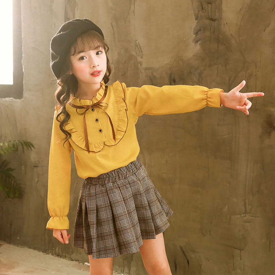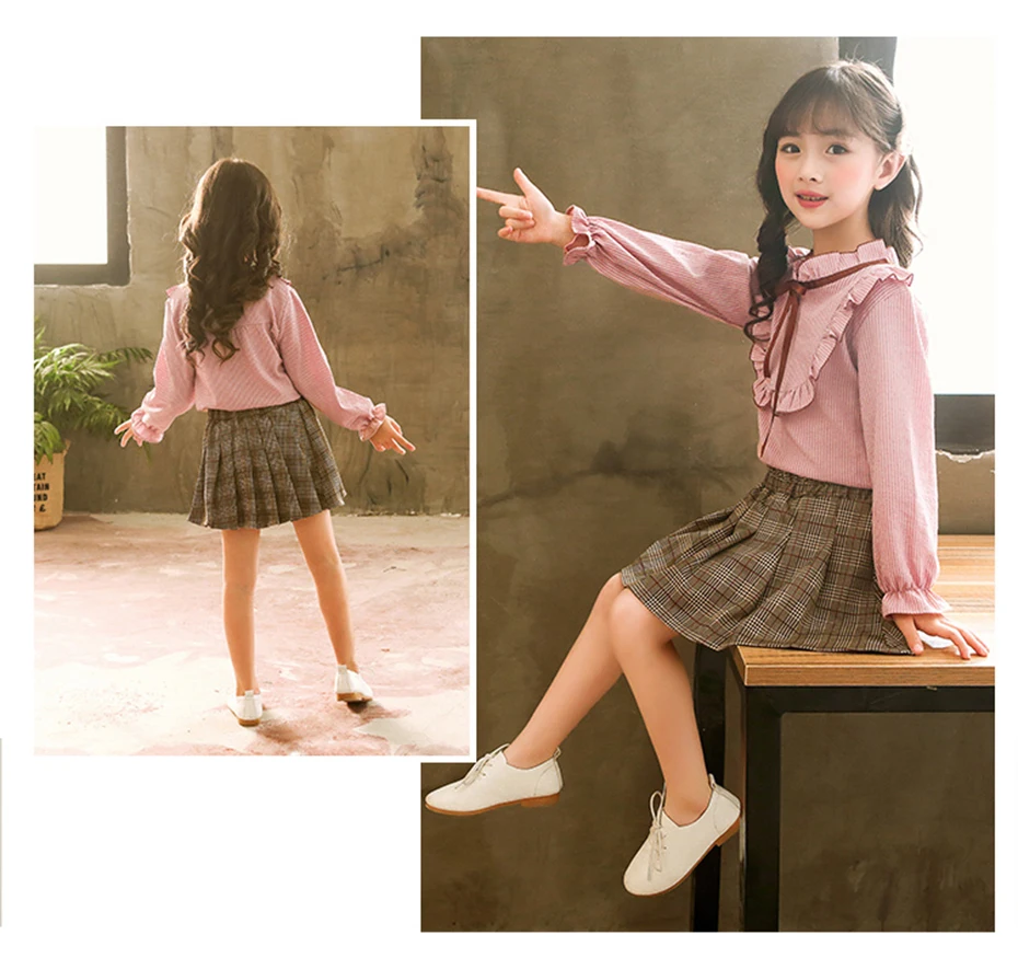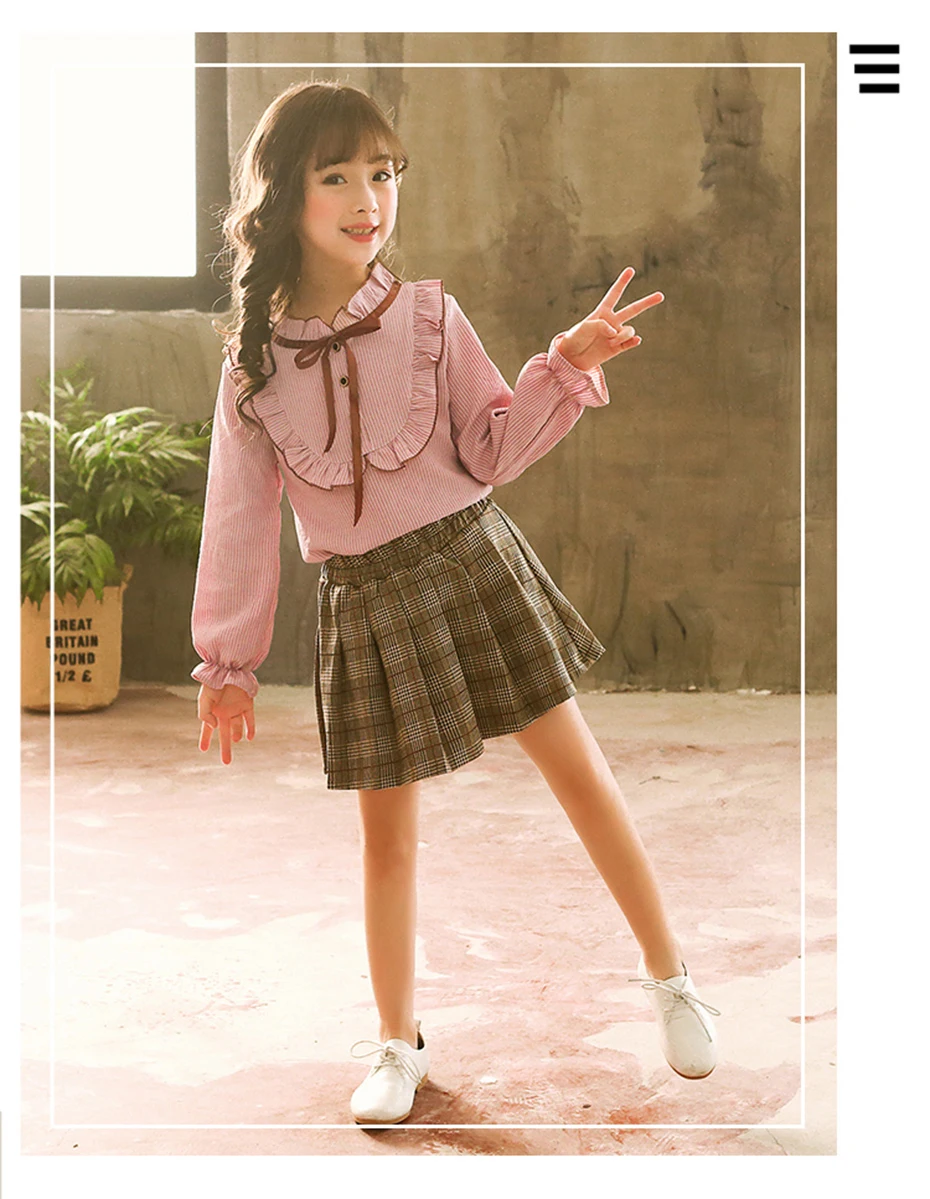 Детская одежда, блузка + платье в клетку, одежда для девочек, весенне-осенняя одежда для девочек, Повседневная стильная детская одежда