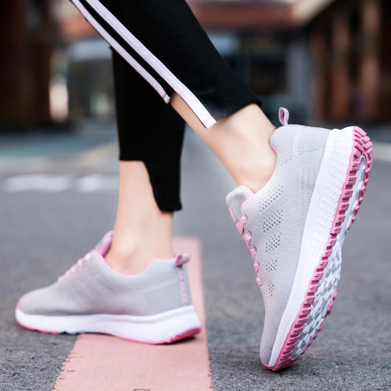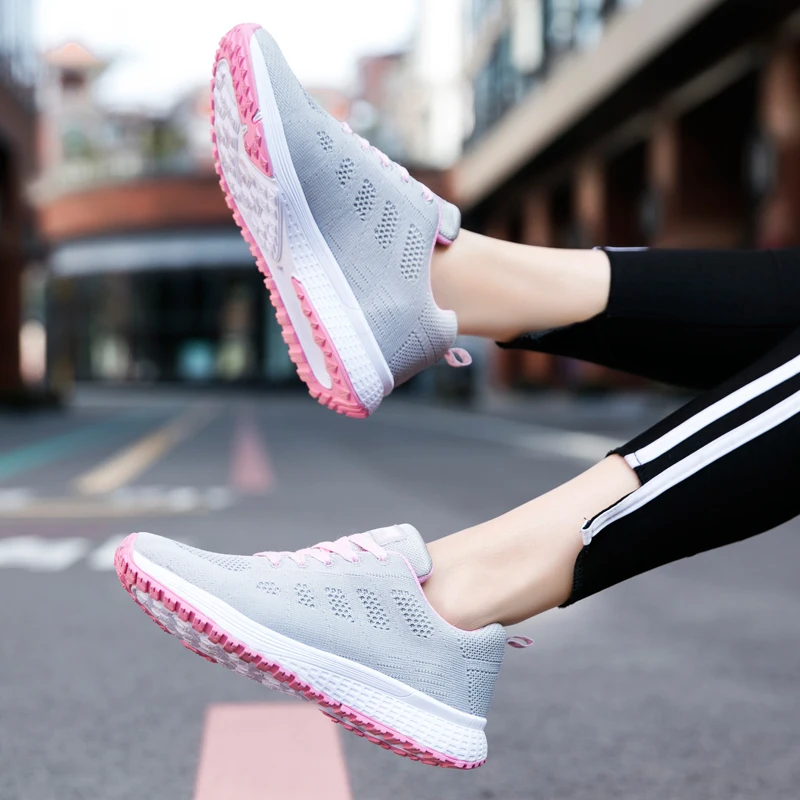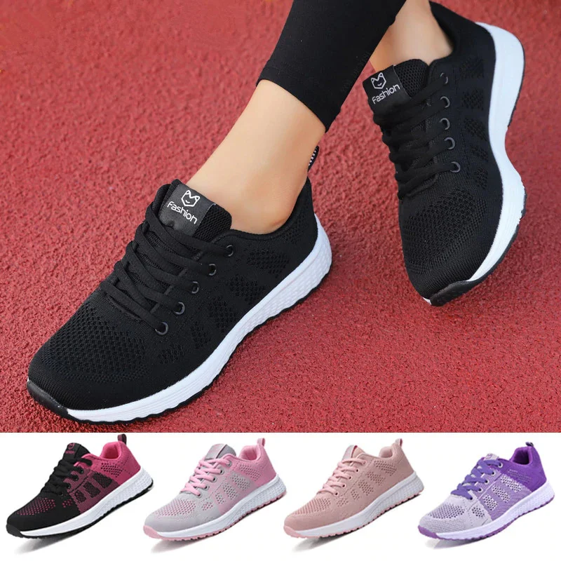 Кроссовки женские сетчатые на шнуровке, легкие дышащие, плоская подошва, повседневная спортивная обувь для прогулок, теннисная обувь, черные, лето