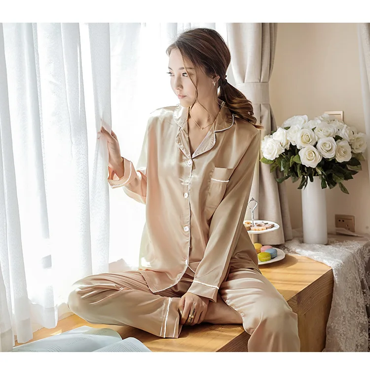 Одежда для сна для женщин из искусственного шелка и сатина, пижамы, пижамный комплект, одежда для сна с длинными рукавами, домашняя пижама одежды комплект ювелирных изделий для женщин Ночная Рубашка домашняя одежда