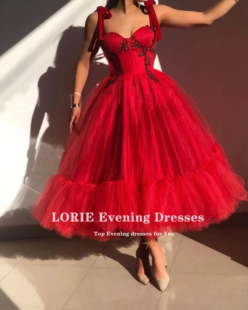Очаровательное платье LORIE для выпускного вечера, ТРАПЕЦИЕВИДНОЕ красное платье средней длины с оборками в арабском стиле, вечерние платья знаменитостей