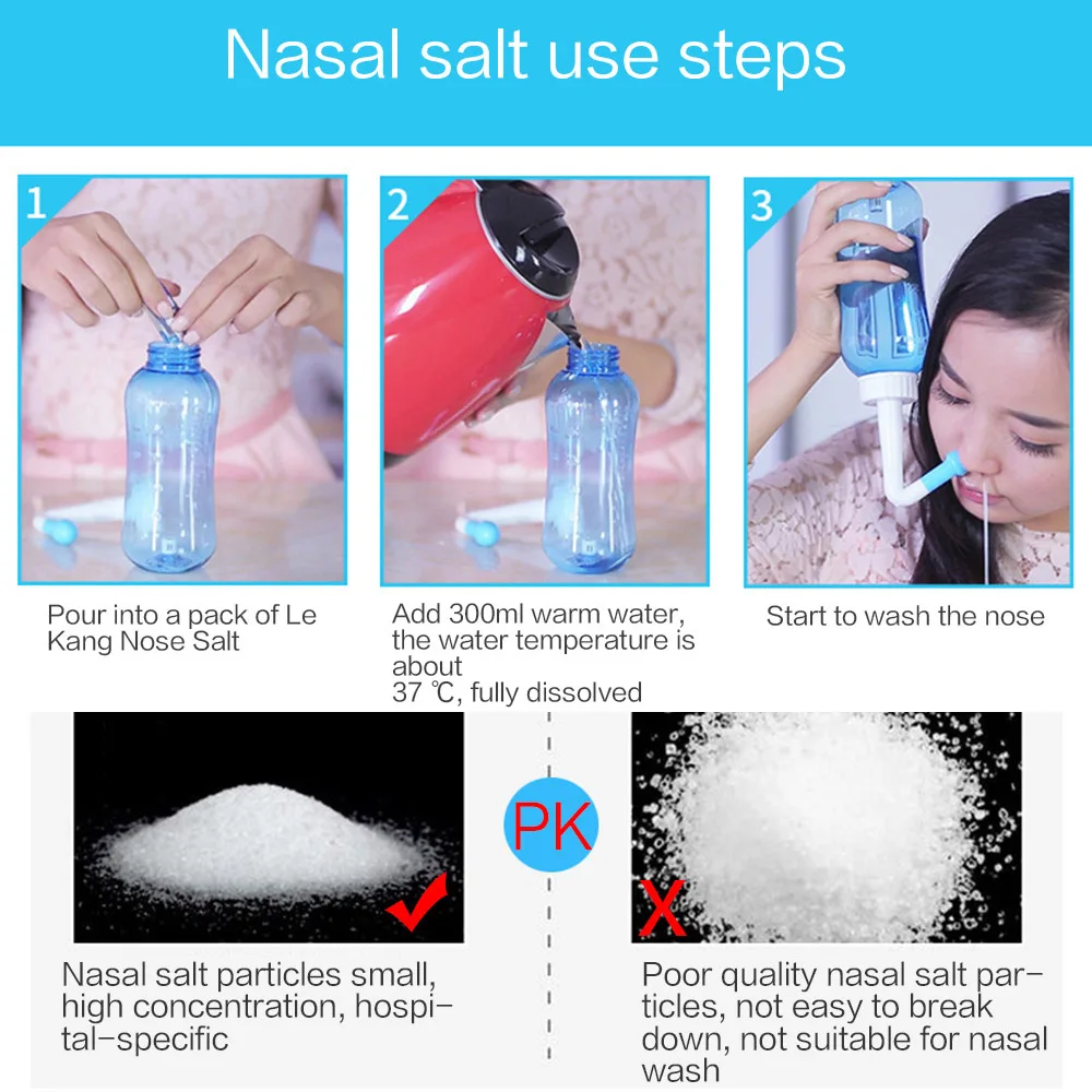 2,7 г * 60 шт. соль для очистки носа, соль для мытья носа для облегчения аллергических веществ, ирригатор краску, синусит, нети, емкость 300 мл для взрослых и детей