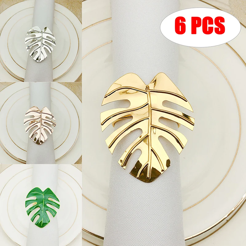 Набор колец для салфеток 6 шт.компл., кольца для салфеток с листьями, декоративная пряжка для салфеток, украшение для свадьбы, вечеринки, Рождества, стола