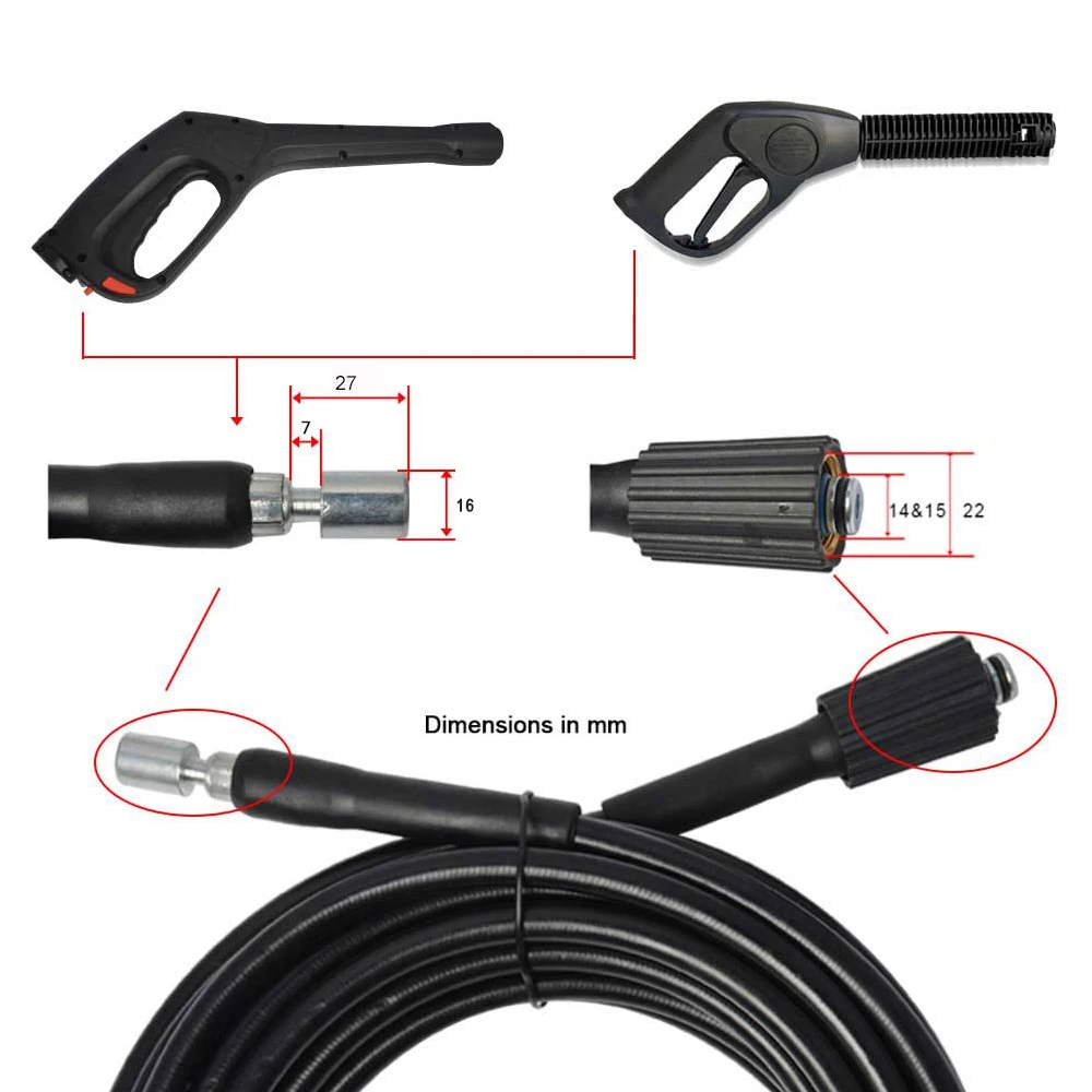 5. Концы шланга: Совместимость с оригинальным шлангом для мойки, отсутствие утечки. (Пожалуйста, проверьте Размер фитинга и убедитесь, что вы покупаете подходящий шланг)