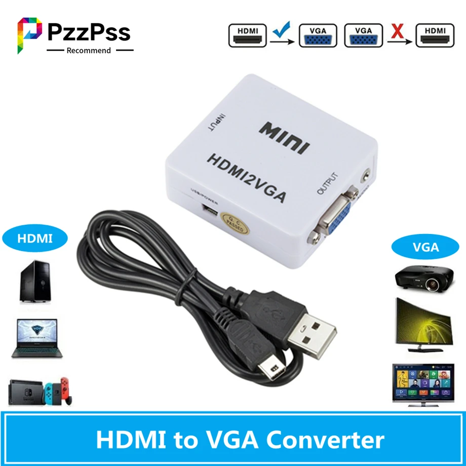 PzzPss HDMI-совместимый адаптер VGA HDMI2VGA преобразователь цифровой аналоговый HD 1080p для ПК ноутбука планшета дисплея HDMI в VGA