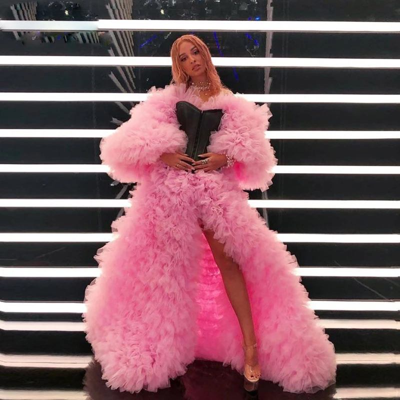 Розовые оборки Многоуровневое Пышное халаты; Платье с фатиновой юбкой с длинной юбкой одевать на день рождения платья Для женщин Vestidos размера плюс ШИК с фатиновой юбкой