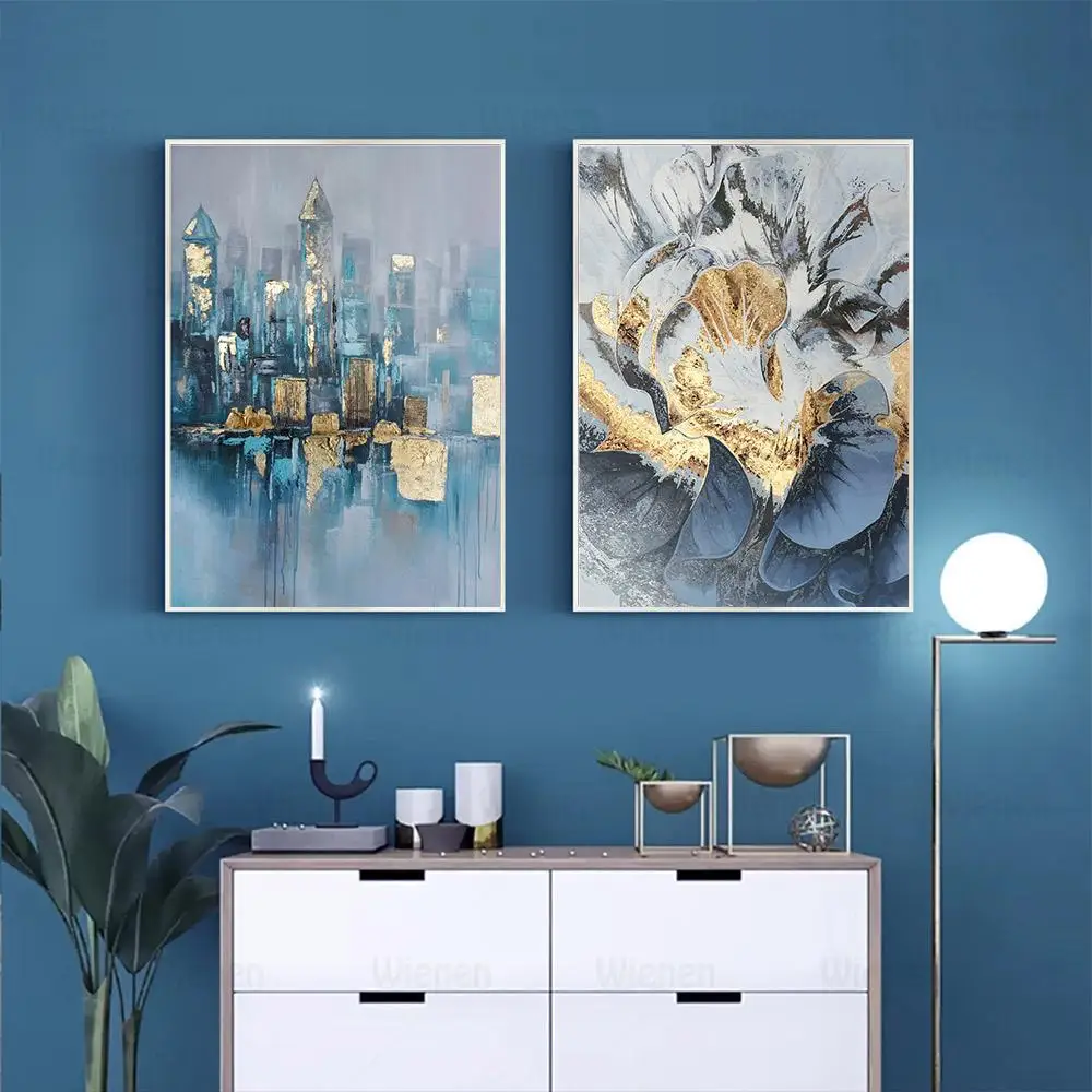 Скандинавский абстрактный городской синий строительный настенный ху...