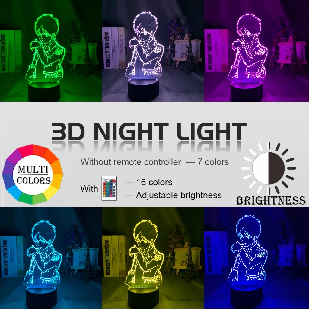 Акриловый 3D ночник Эрена йера, фигурка спальни, Декор, ночсветильник, Прямая поставка, питание от аккумулятора, Подарочная лампа атака на Титанов