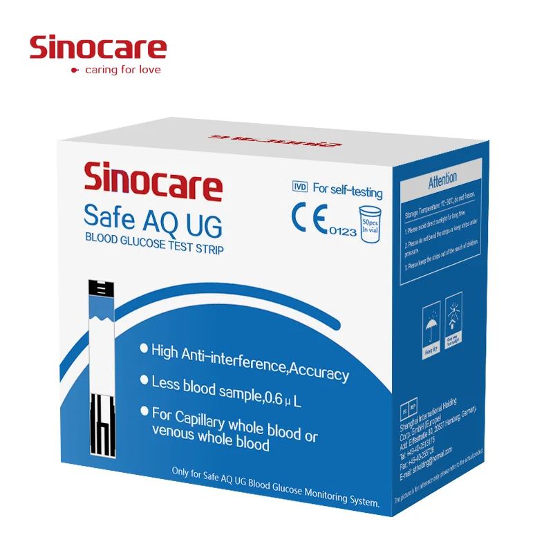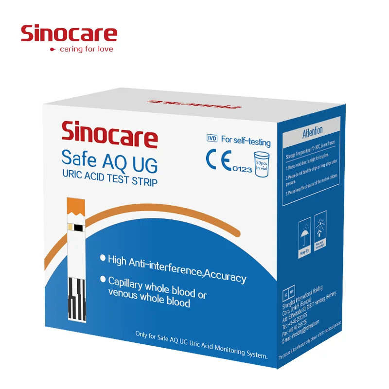 Тест SINOCARE для определения уровня глюкозы в крови и мочевой кислоты, 50 полосок