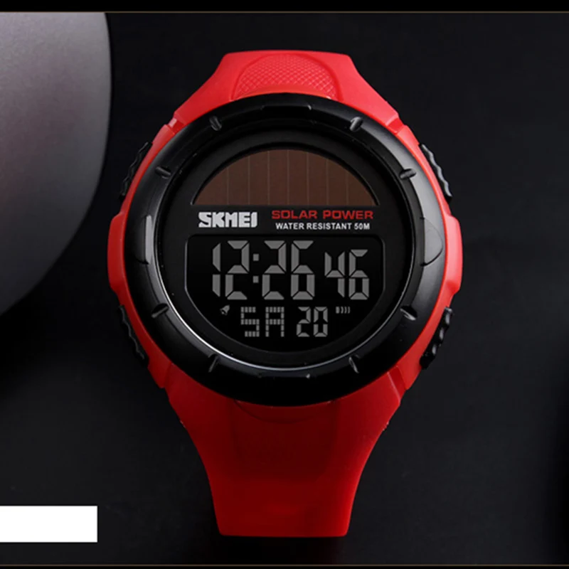 Часы SKMEI мужские светодиодные на солнечной энергии, водонепроницаемость 50 м, полиуретановый ремешок, отображение даты и недели, светящиеся цифровые наручные