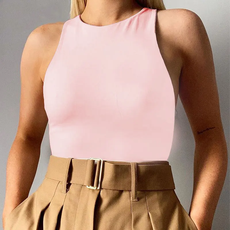 Женское боди без рукавов, с круглым вырезом и открытыми плечами