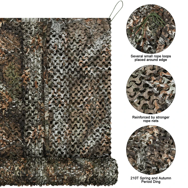 Наша камуфляжная сеть использует надежный качественный материал, который устойчив к гниению и долговечен в использовании. Он может быть хорошо смешан с окружающей средой для невидимости из-за его дизайна и цвета. Легкая и быстрая сушка, отлично подходит для охоты, стрельбы, строительных укрытий и т. д. также отличная игрушка для детей, которые очень сильно скрываются и ищут. Чего вы ждете?
