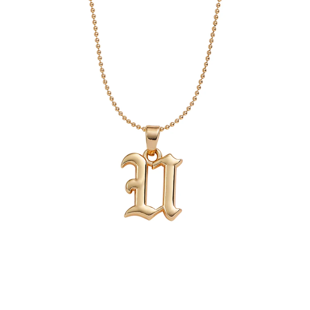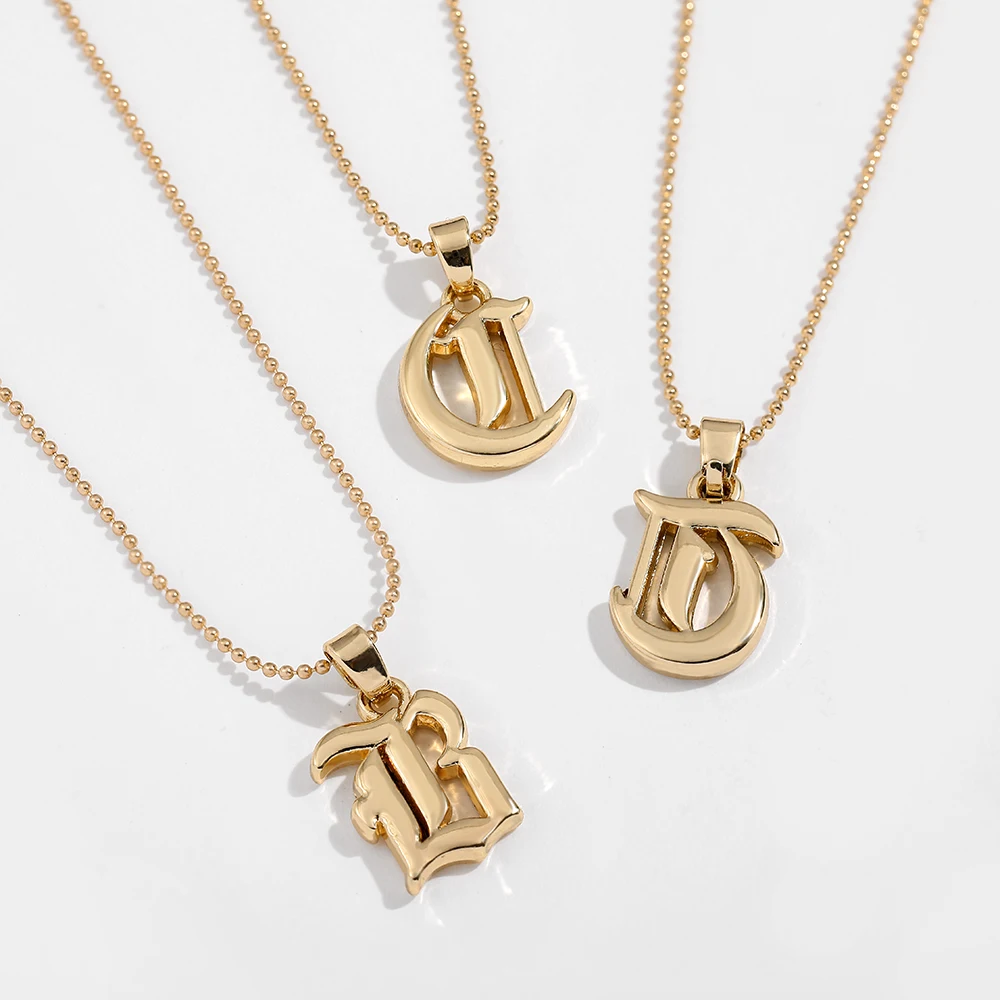 Винтажное готическое A-Z ожерелье с подвеской в виде старого английского алфавита, цепочка золотого цвета с бусинами, женская бижутерия