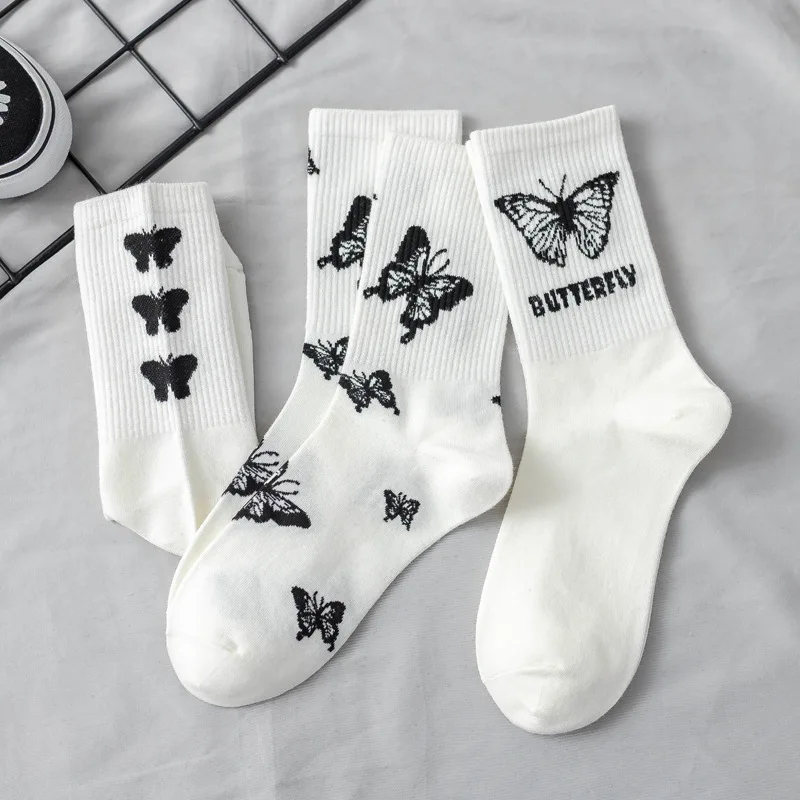 Носки женские осенние белые в японском стиле, с милыми бабочками