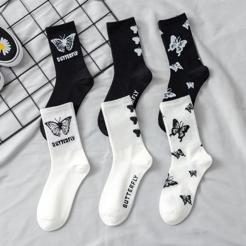 Носки женские с рисунком бабочки, милые модные дамские носки в стил...