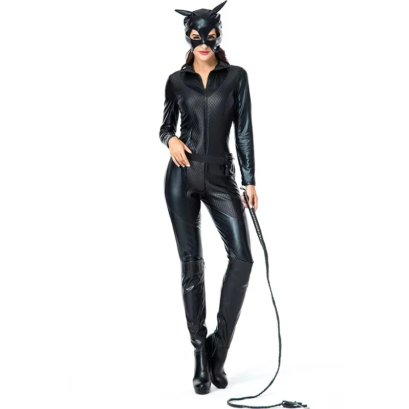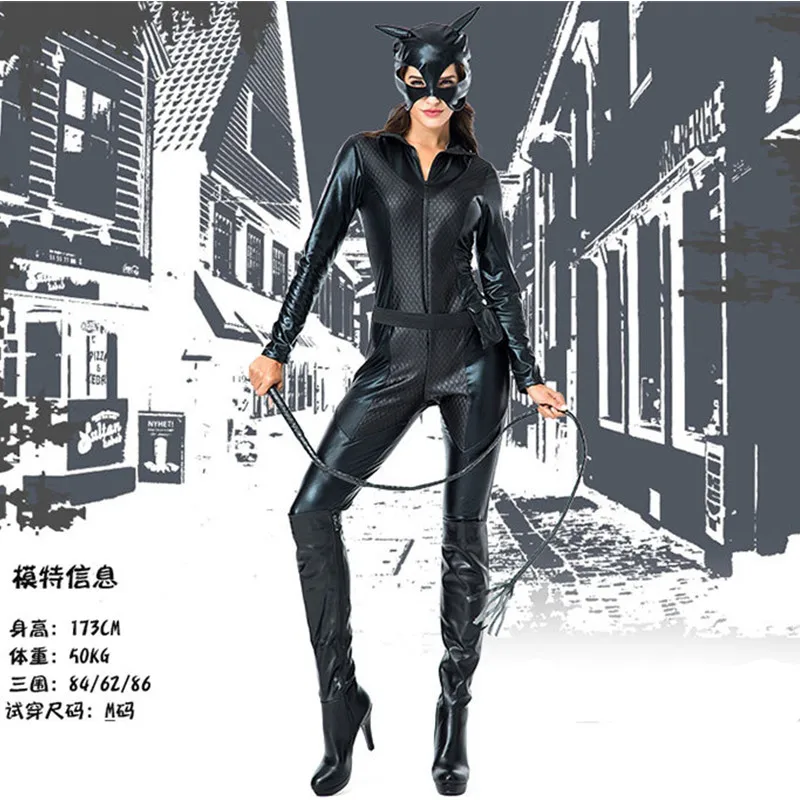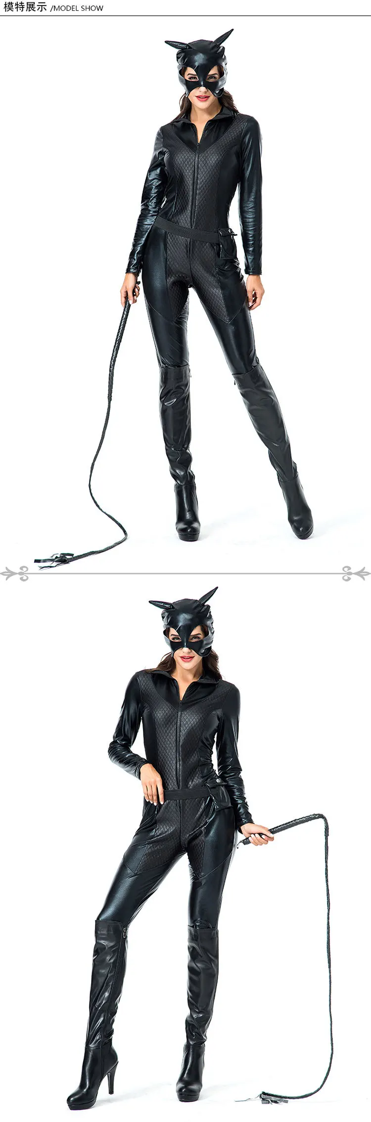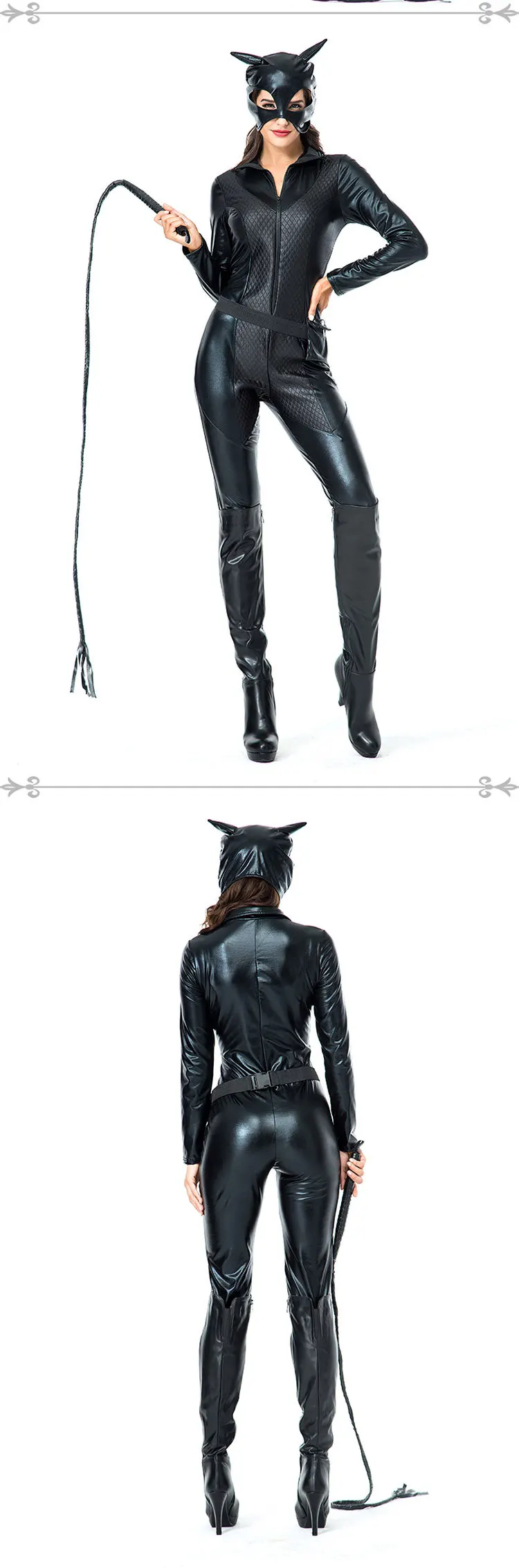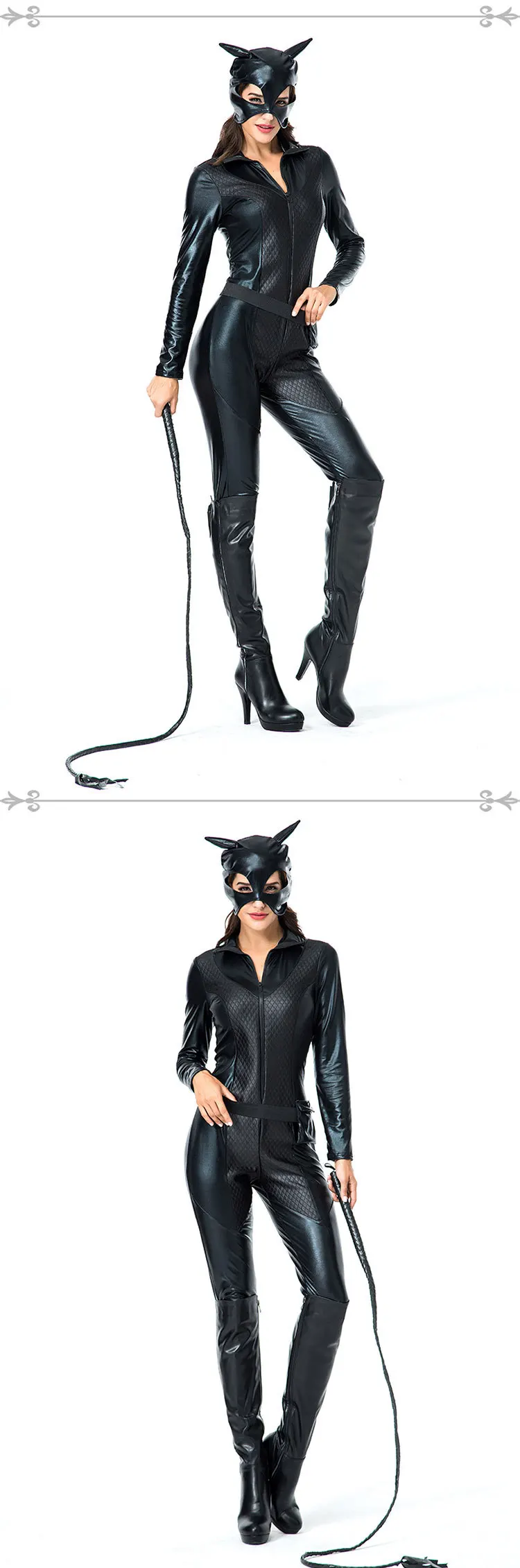Плотная искусственная кожа Комбинезоны для женщин с изображением черного кота, косплей костюмы на Хэллоуин костюмы животных Пурим ночной клуб бар ролевая игра вечерние платья