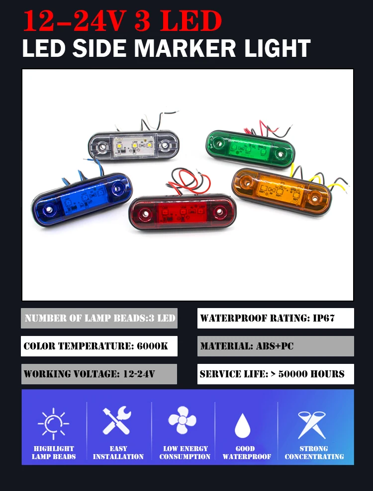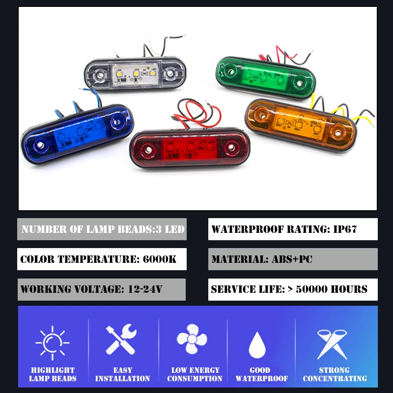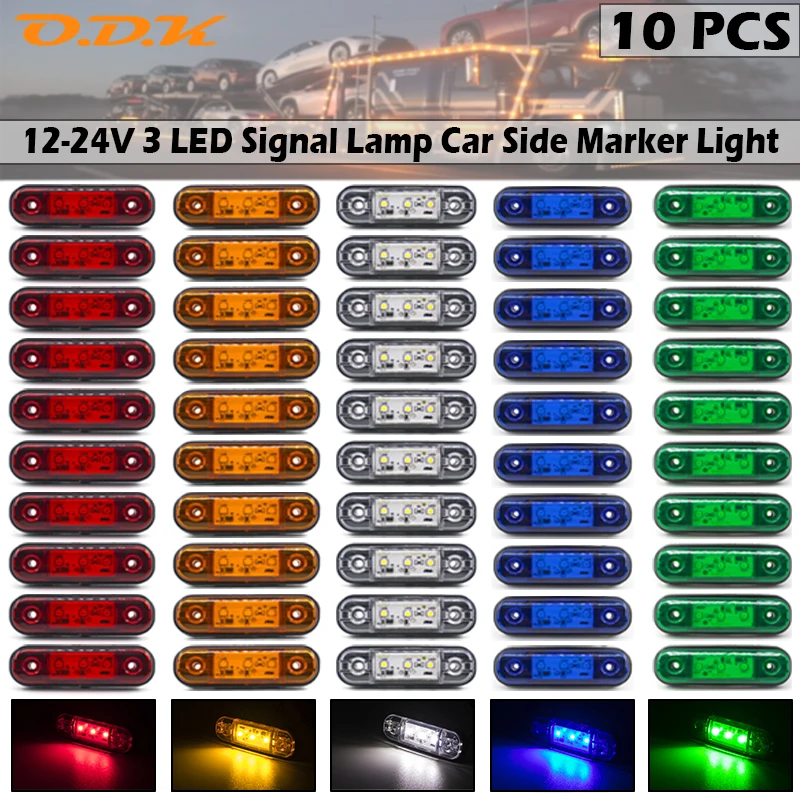 Водонепроницаемые габаритные огни для автомобилей, 10 шт., 12-24 В, 3 светодиода