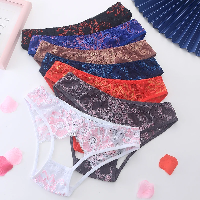 Открытые трусики для секса, кружевное Прозрачное нижнее белье, женс...