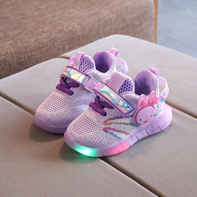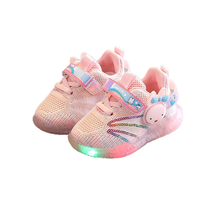 Детские кроссовки со светодиодной подсветкой, повседневная спортивная обувь для мальчиков и девочек, мультяшный рисунок, модная детская обувь с кроликом, весна 2021