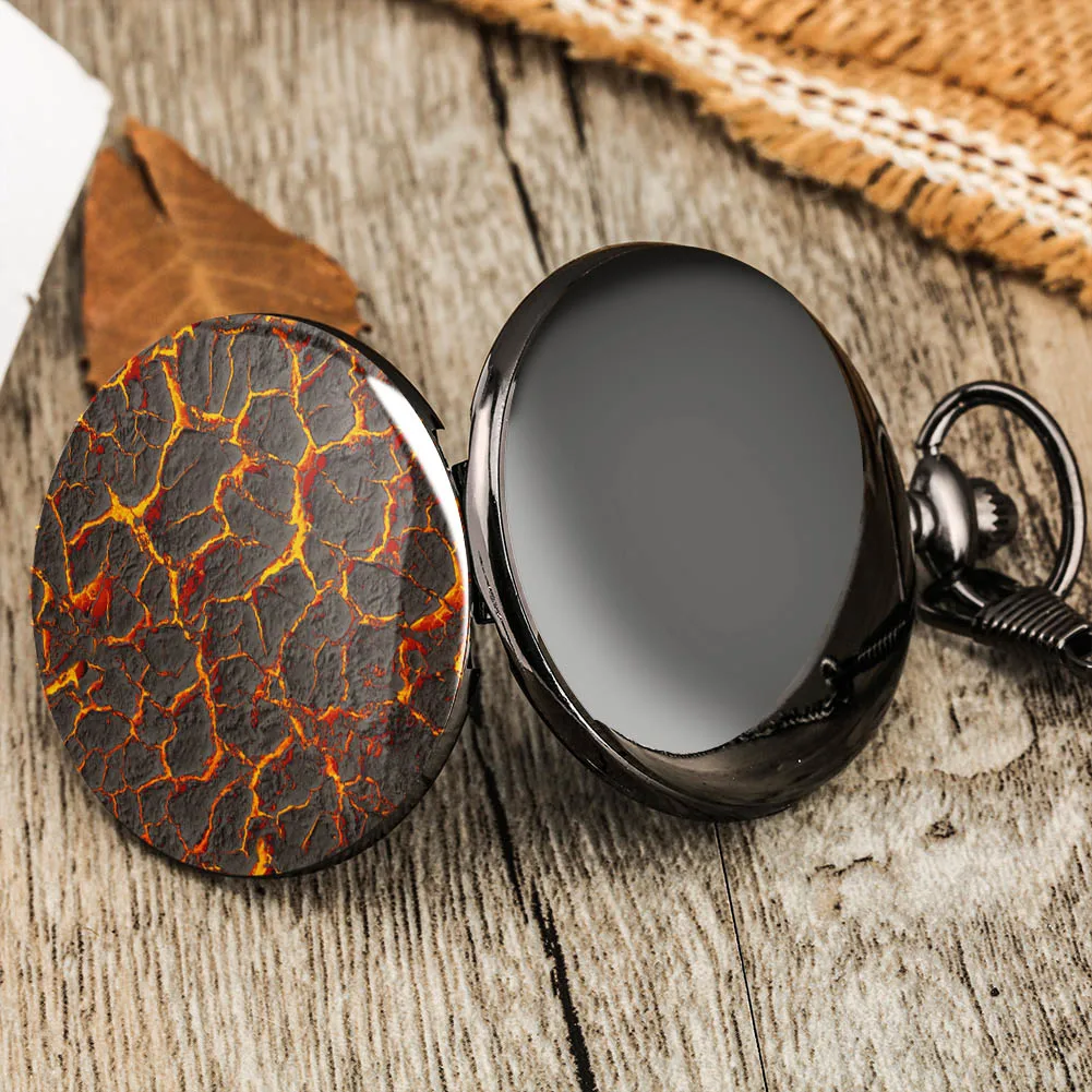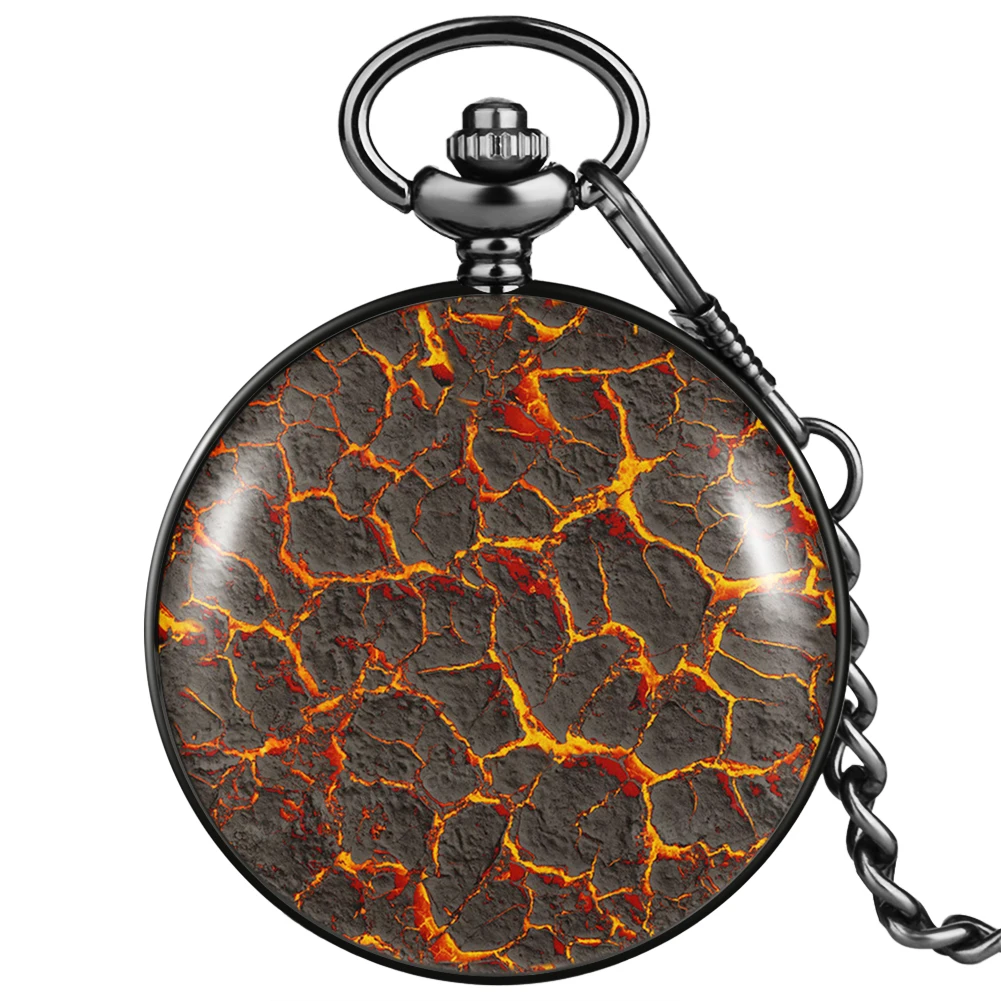Реалистичные карманные часы с изображением вулканической скалы, цифровой прозрачный кварцевый Циферблат, гладкий откидной Чехол из сплава, подарочные мужские Подвески на толстой цепочке