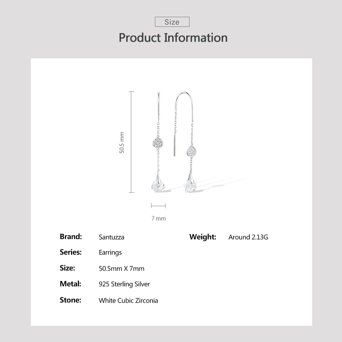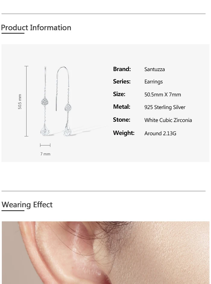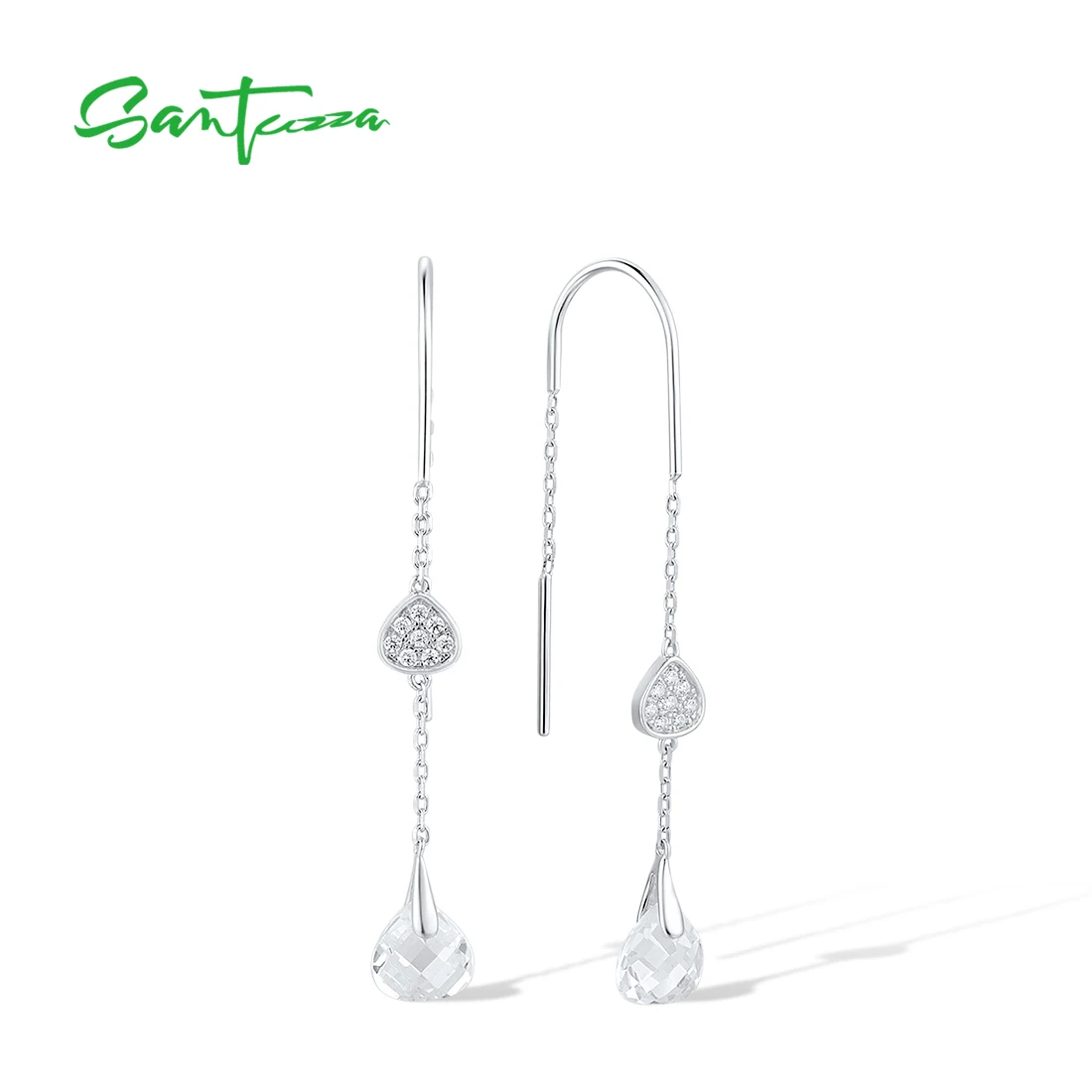 Женские Ювелирные украшения SANTUZZA, с белыми фианитами, 925, висячие серьги из серебра 925 пробы