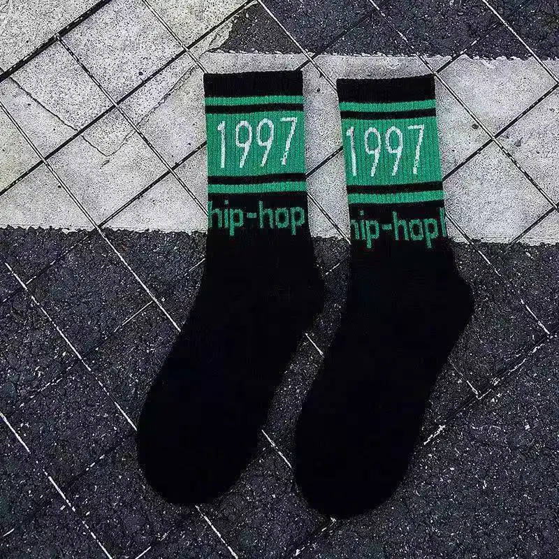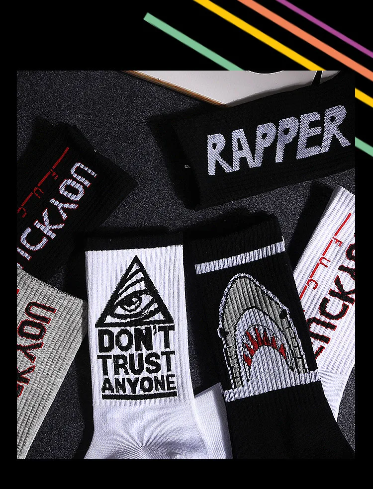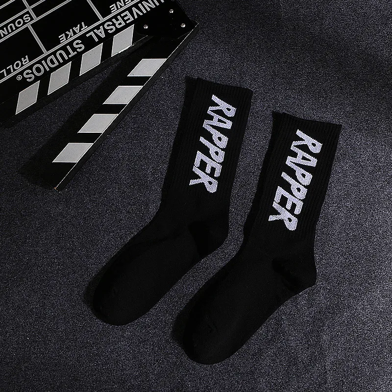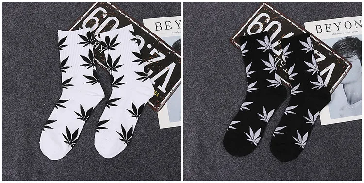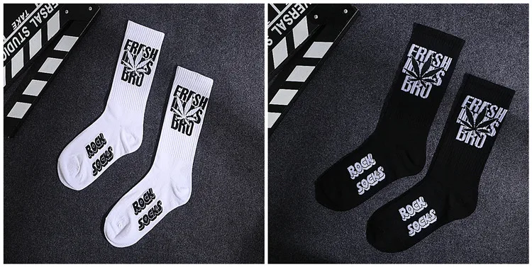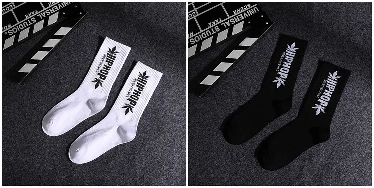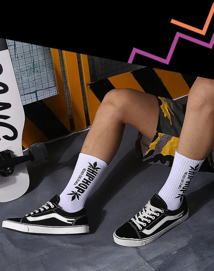 Скейтборд Женский, черный, белый, с буквами и листьями, в стиле хип-хоп, носки на весну и осень