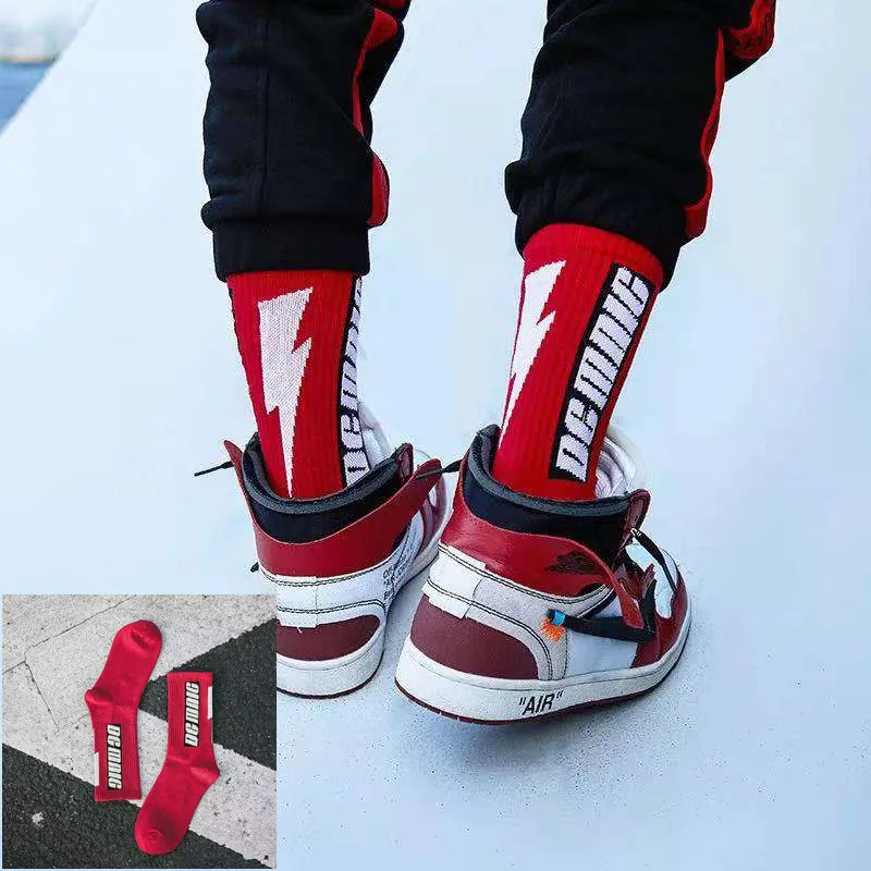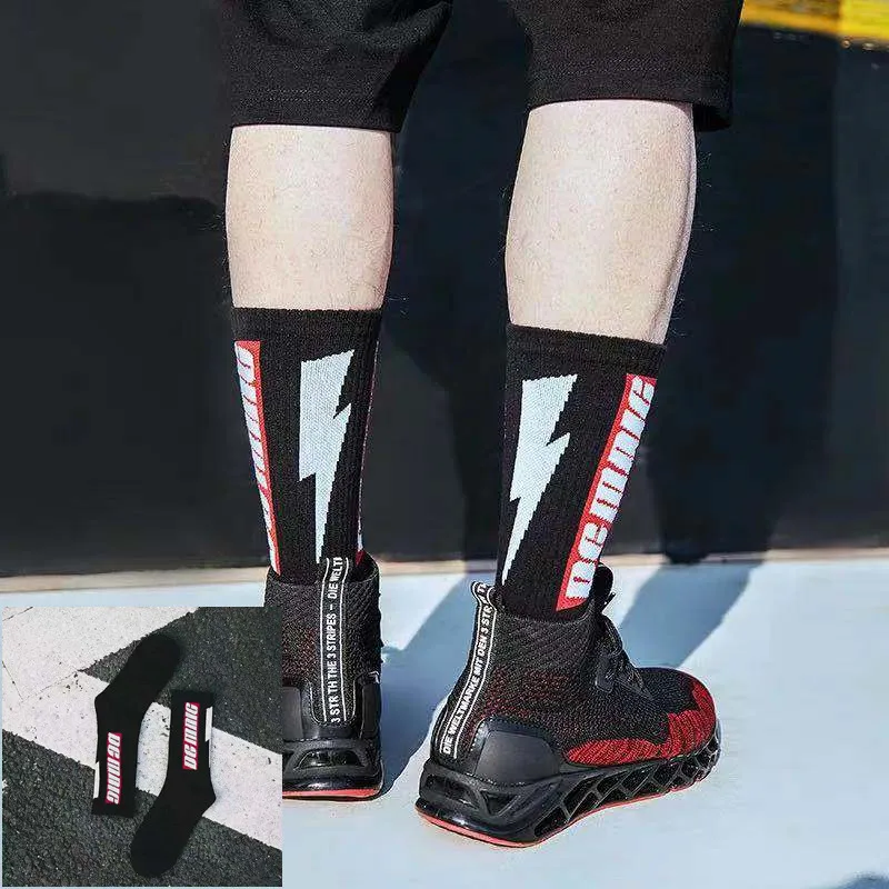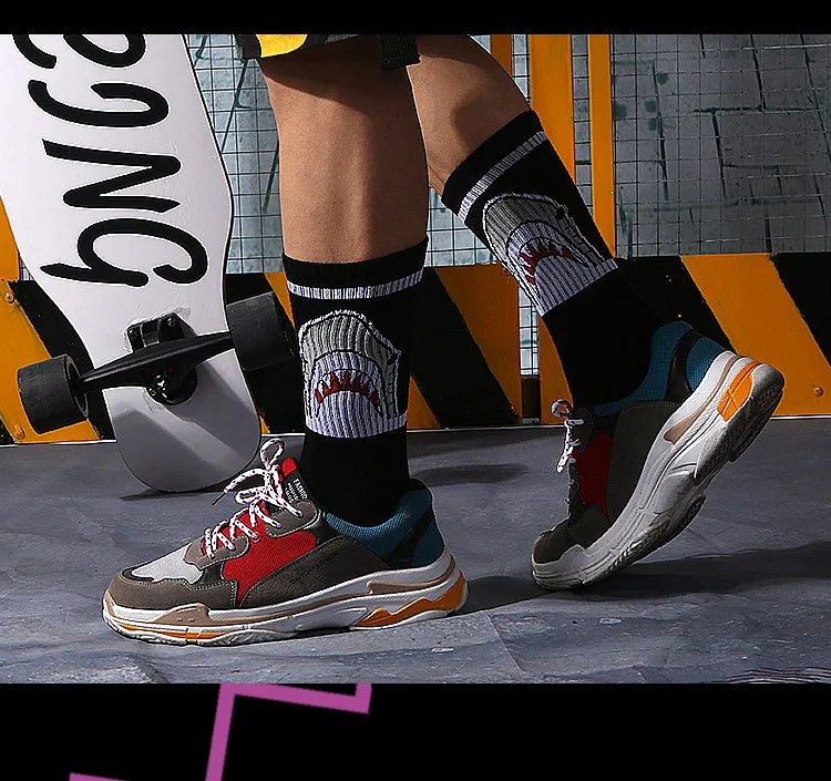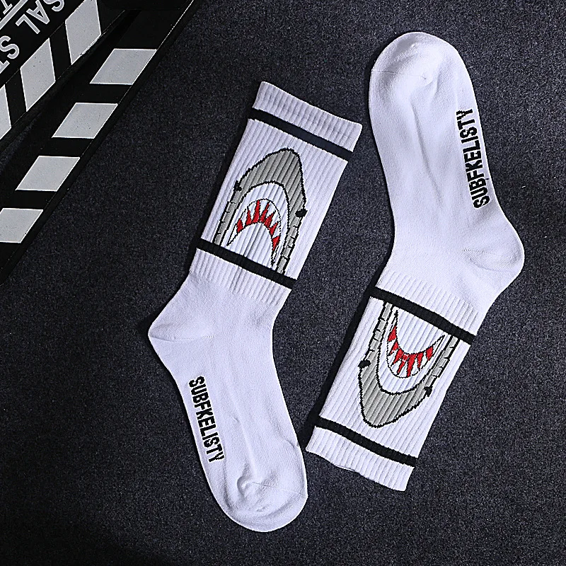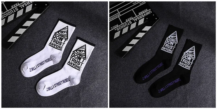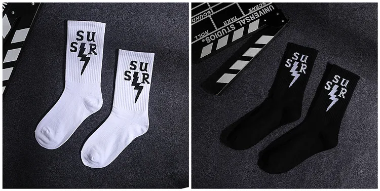 Скейтборд Женский, черный, белый, с буквами и листьями, в стиле хип-хоп, носки на весну и осень